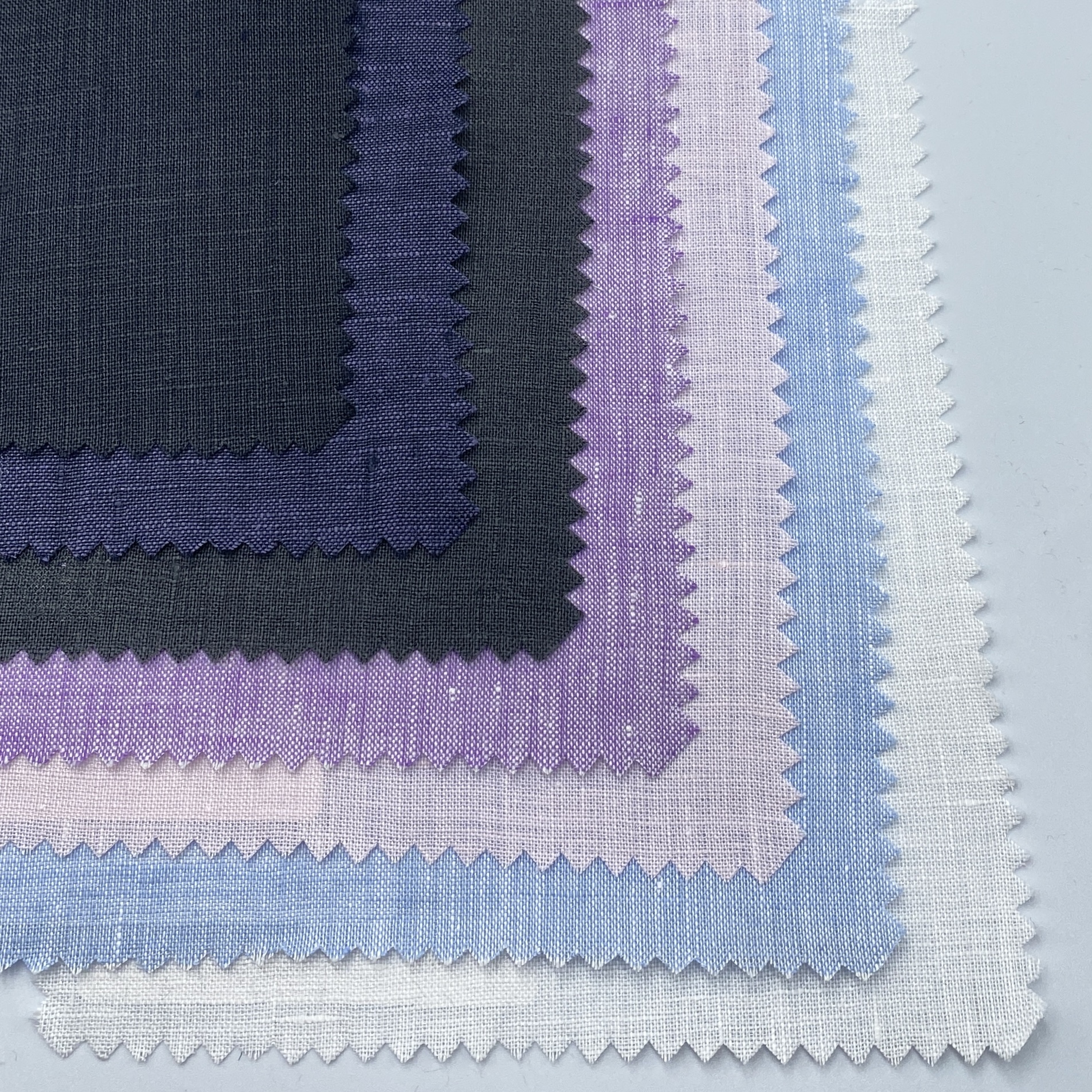 とてもインテレクチュアルなブルーが印象深いMiletaのエンドオンエンド(ハケメ)素材でお作りした1枚。