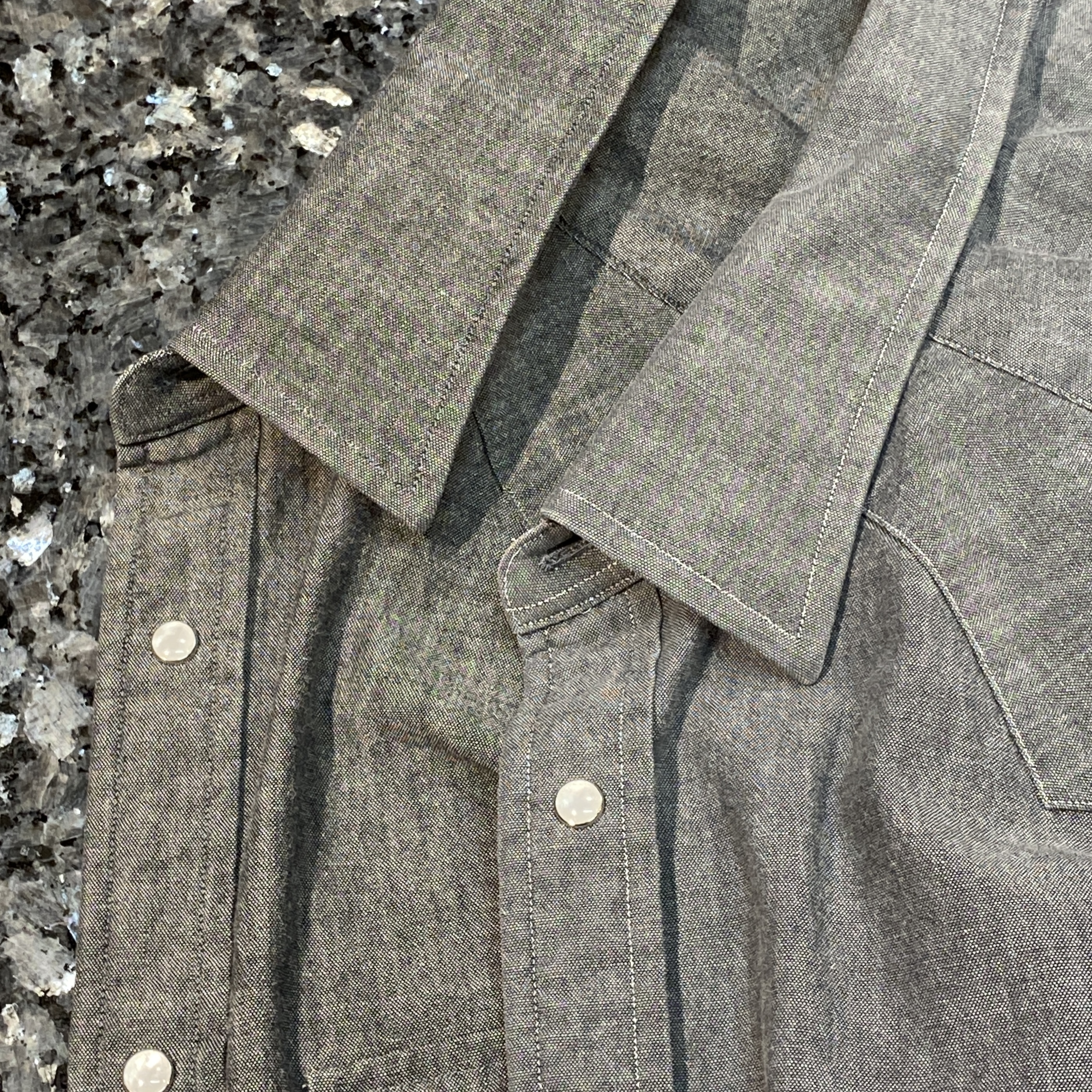 僕はこちらなら最近のお気に入りデザイン/スタイルである「ギャザースタイル + ラージラウンドカッタウェイカラー + コンヴァーチブル仕様の大丸シングルボタンカフス + フライフロント+ 胸ポケットレス仕様 + 二重タライデザインのマザーオブパールボタン」も考えましたが。。。