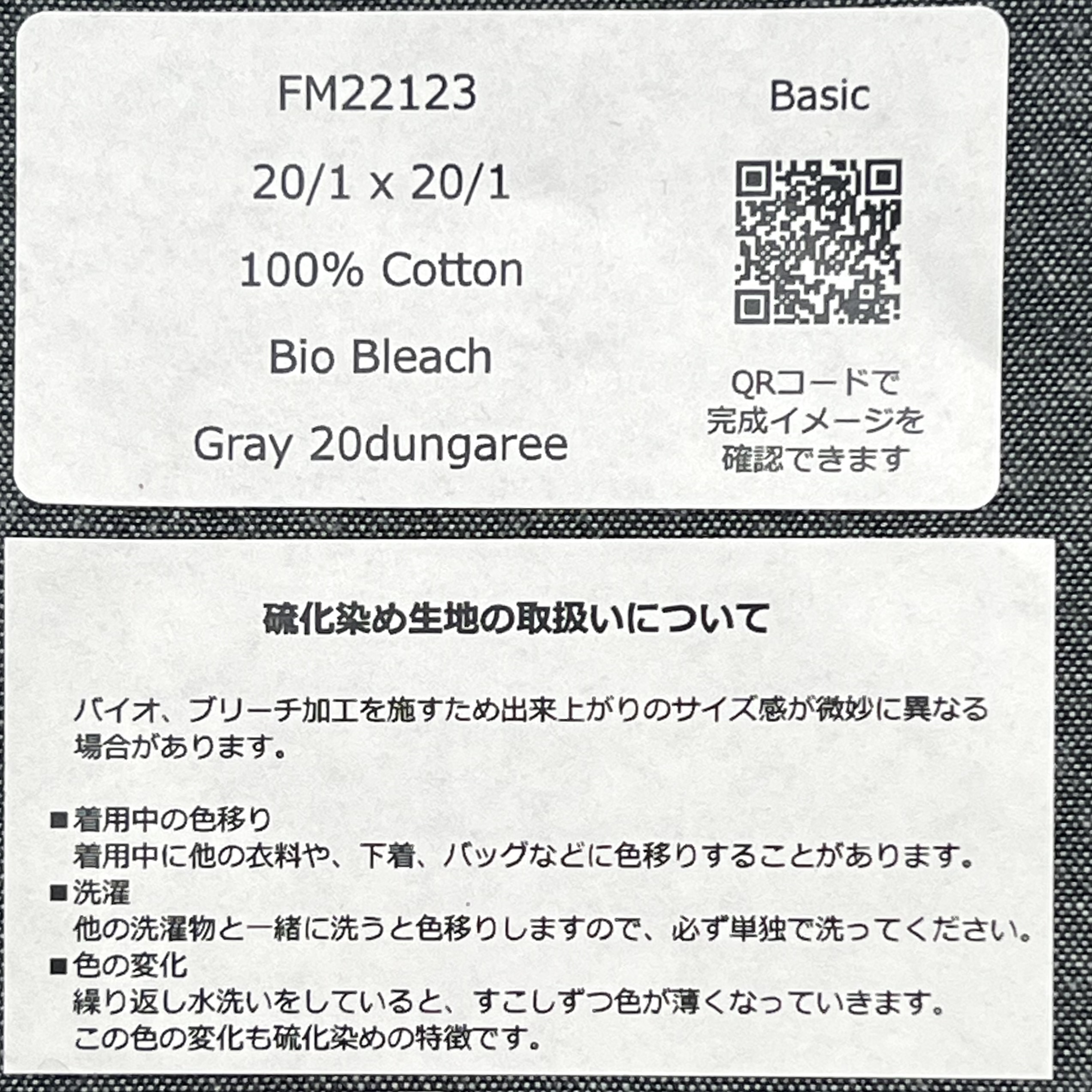品質は64% Cotton + 36% Polyamide、糸番手は経糸が60番手単糸×40番手単糸で緯糸が75D(デニール)です。