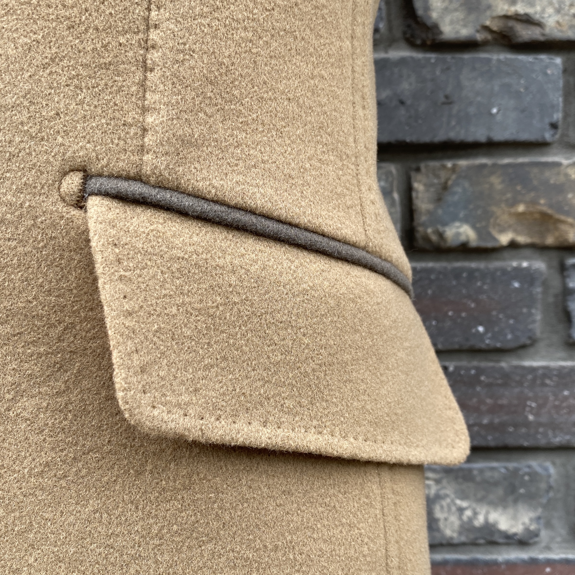 チェストポケットのみアウトポケット(ウェストポケットはフラップつき両玉縁)という仕様はかなりユニークだと思います!