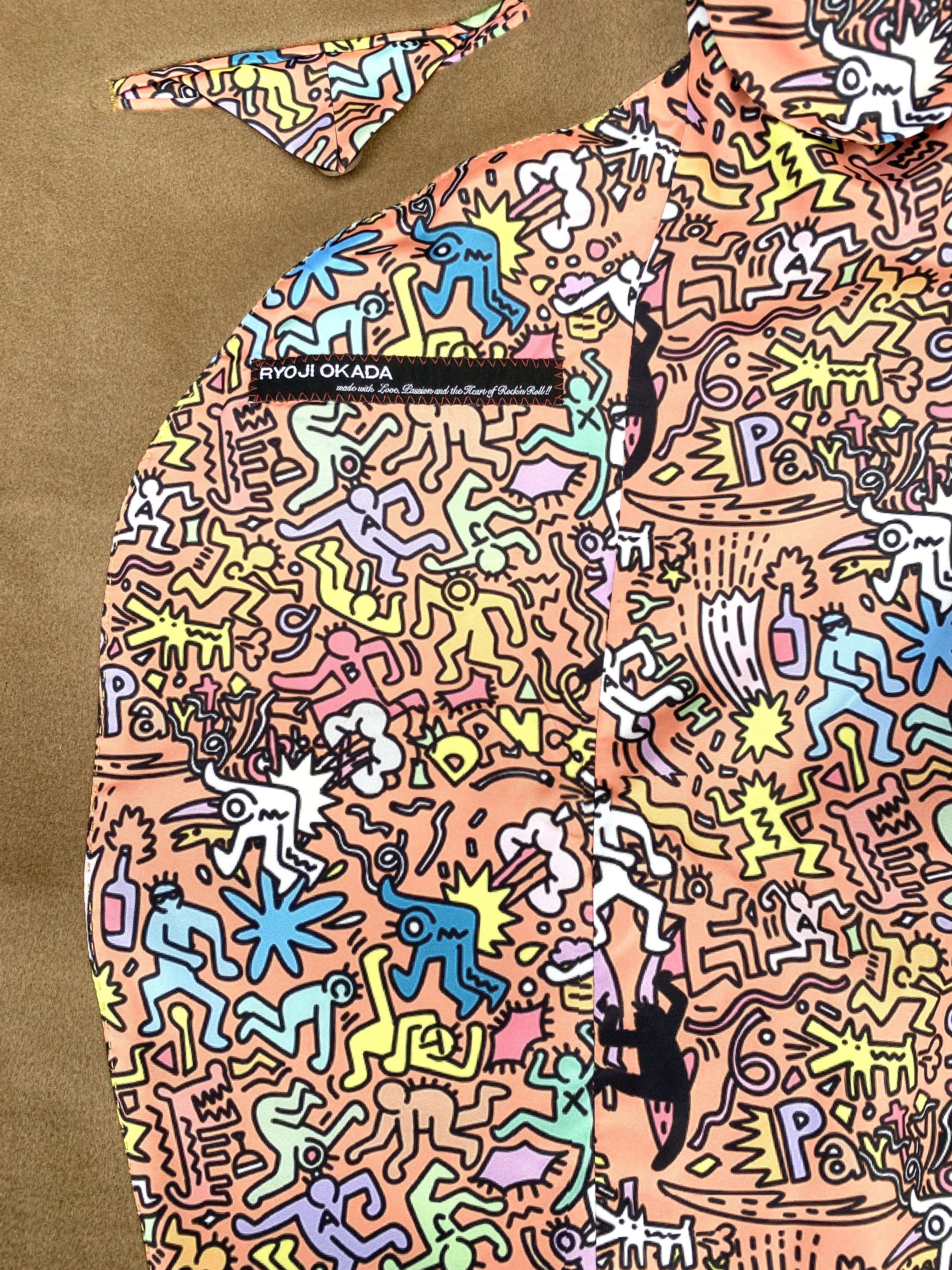 袖を通すたびに元気がいっぱいになりそうなOrangeベースのKeith Haringライニング!