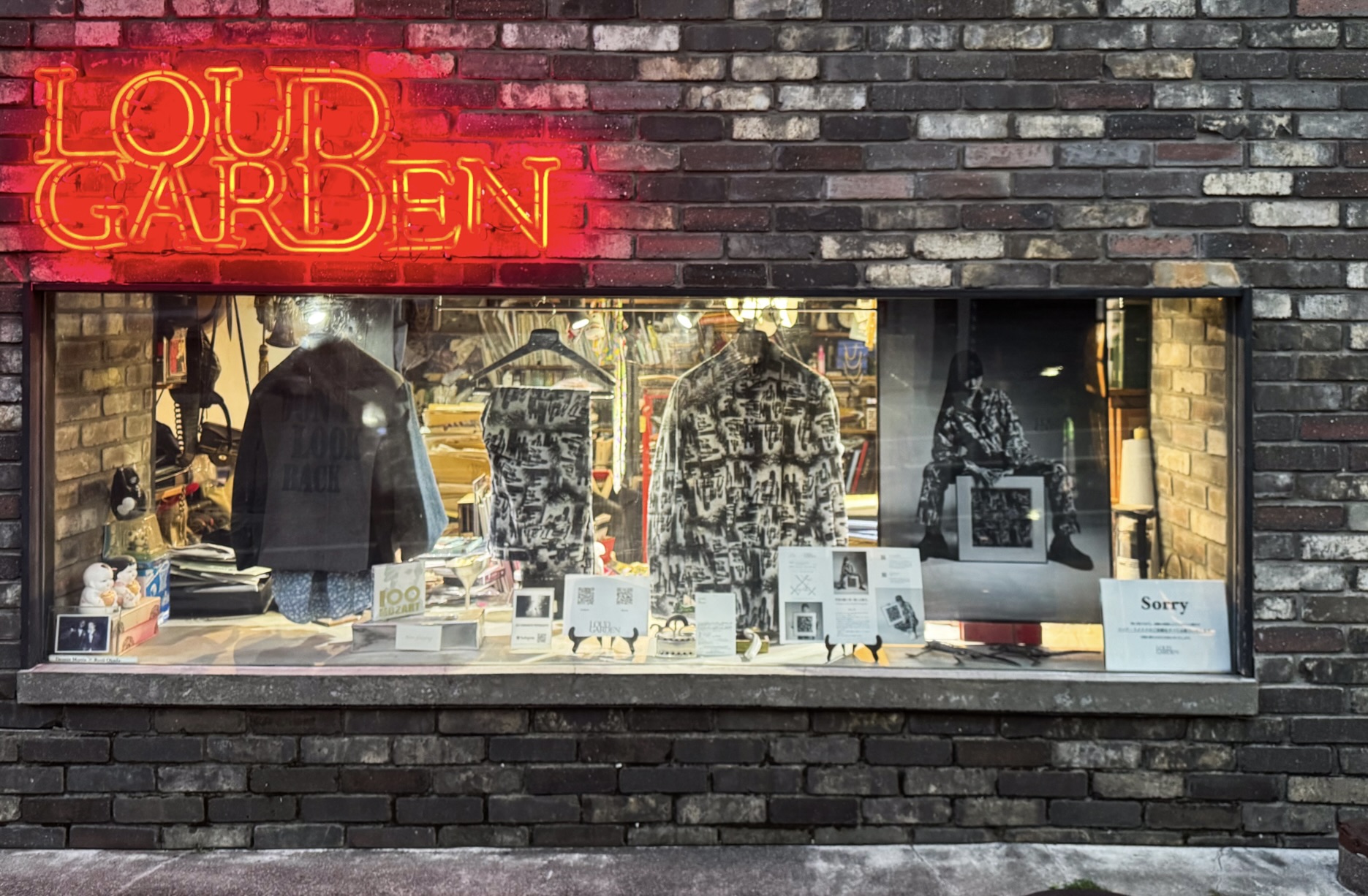 さて、明日から始まる「Joji Shimamoto × LOUD GARDENの準備ですが、先週金曜日からメインウインドウやバックドア横のウインドウボックス、そして店内でガンガン告知をしています!