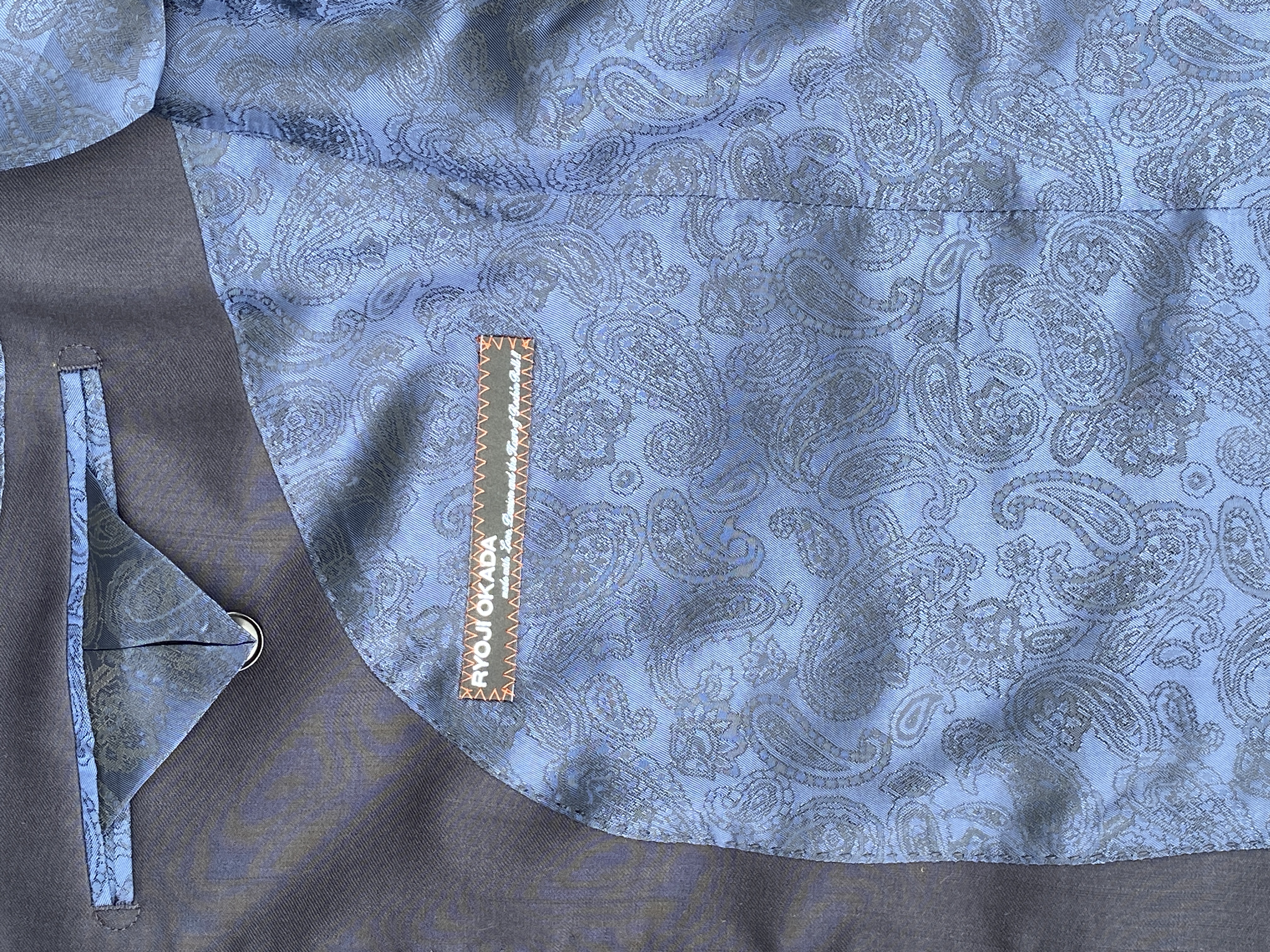 が、今回はロックな反逆精神を少々加えて、やや明るいトーンのネイヴィブルーがなんともエレガントなペイズリジャカードライニングにしました。
