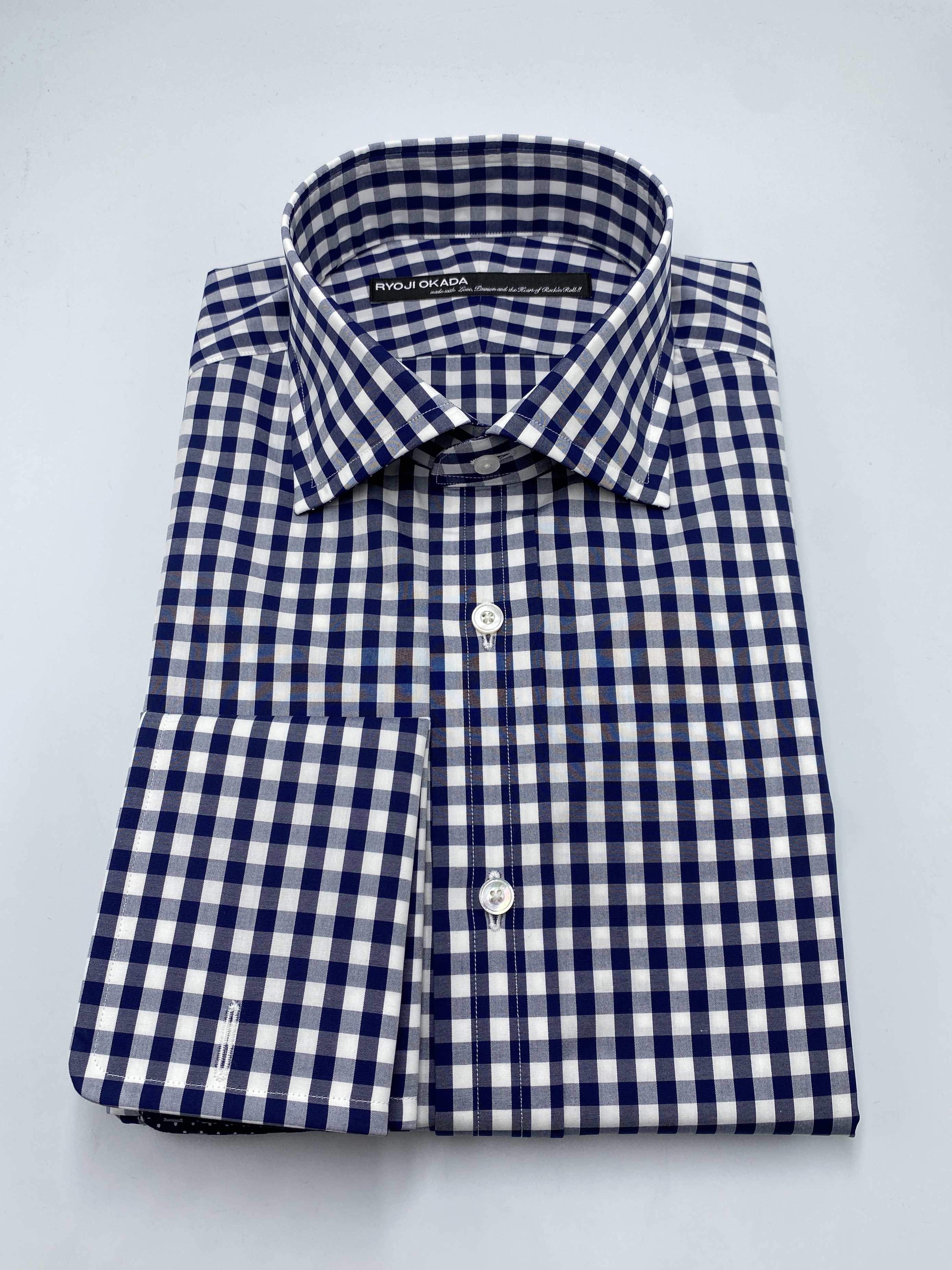 「ヴェリーEnglishスタイルのシャツを作る」という構想をした際に真っ先にイメージした色柄がクラシックサイズかつNavy Blue/Whiteのギンガムチェックでした。