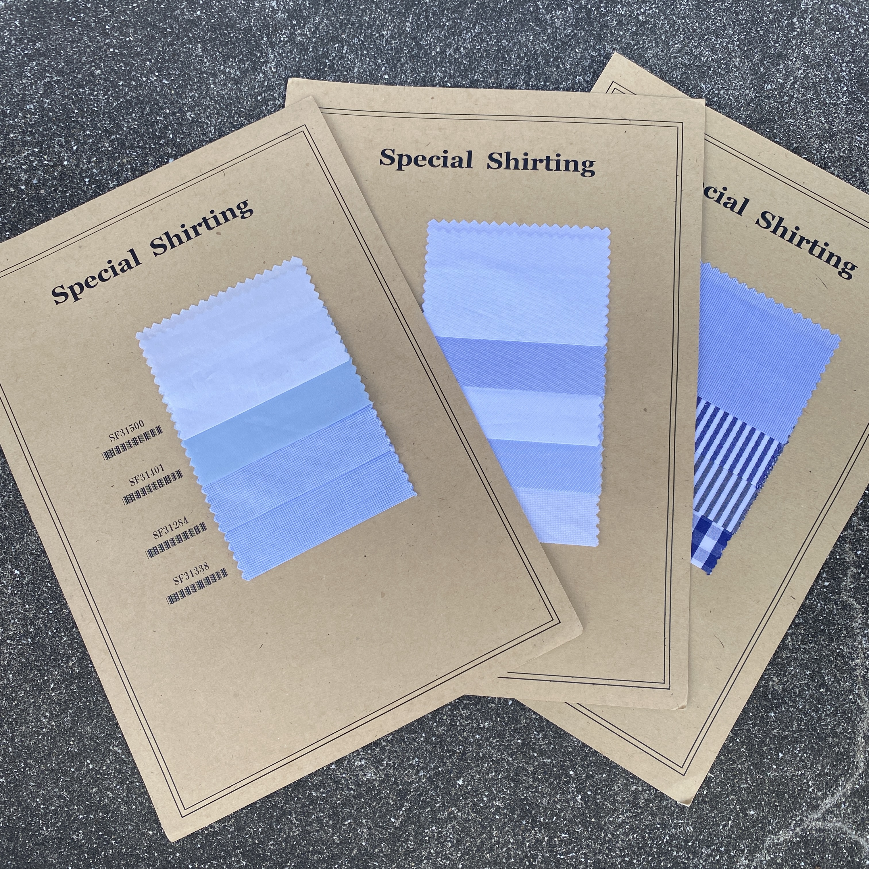 スワッチコレクションは ↓こういった感じ↓ でスワッチ見本が台紙に貼られています。