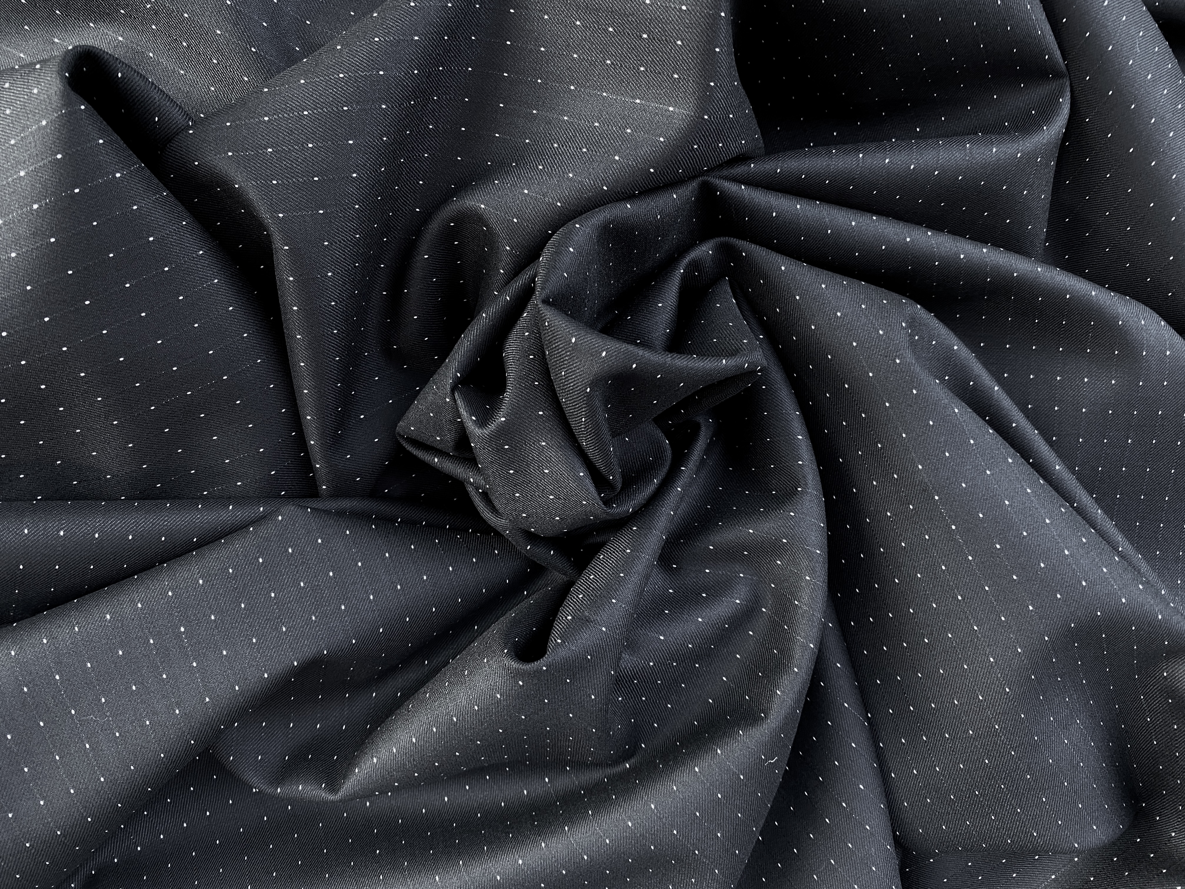 が、10年くらい前にNavy Blueのピンドット素材で作ったらすごくイイ感じだったし、ここまではっきりしているピンドットはあまり見た記憶がないし、Bower Roebuckだし、1着追加したかったBlackベースだし購入しました。