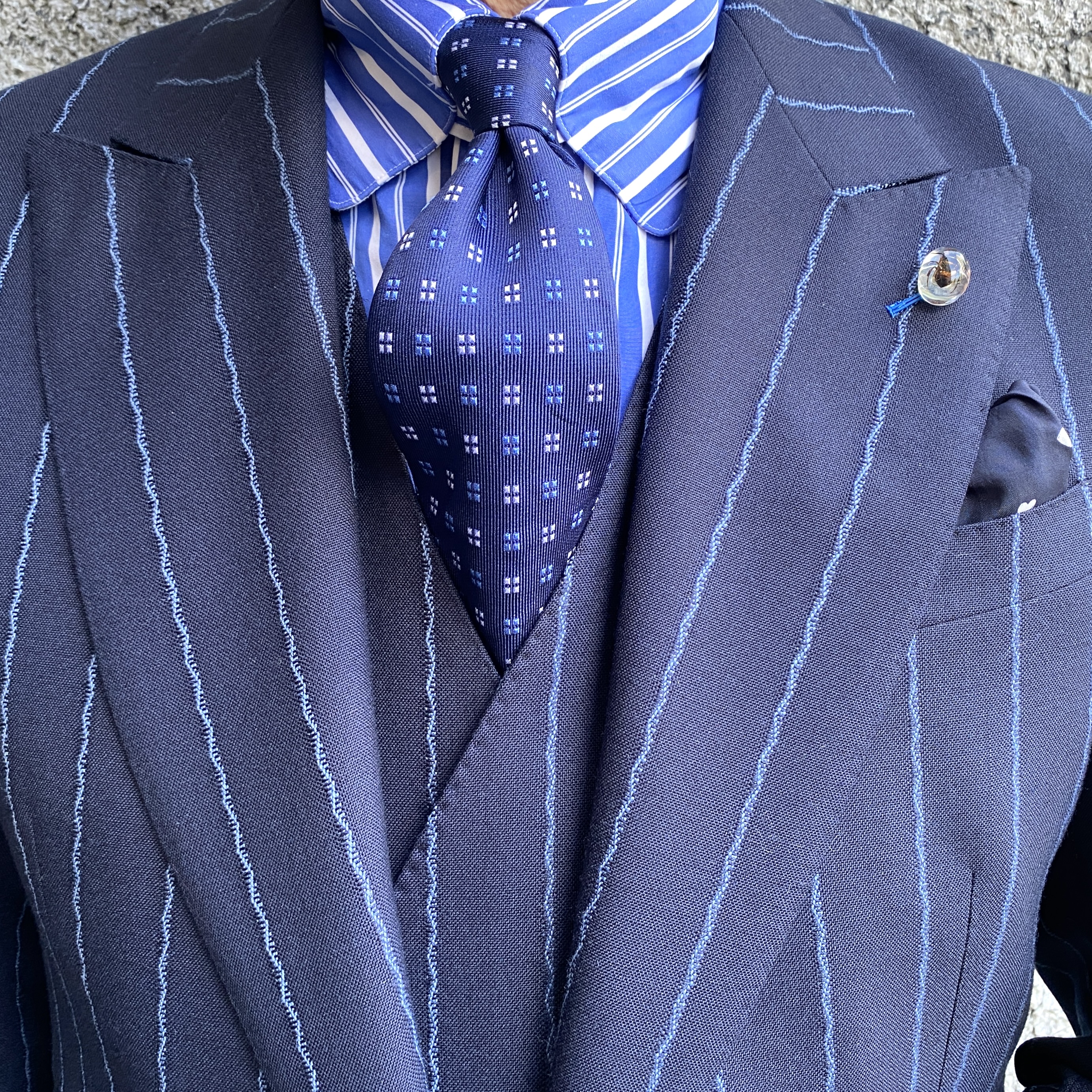今春作った “Bohemian Blue” なZigzag Striped Three Piece Suit