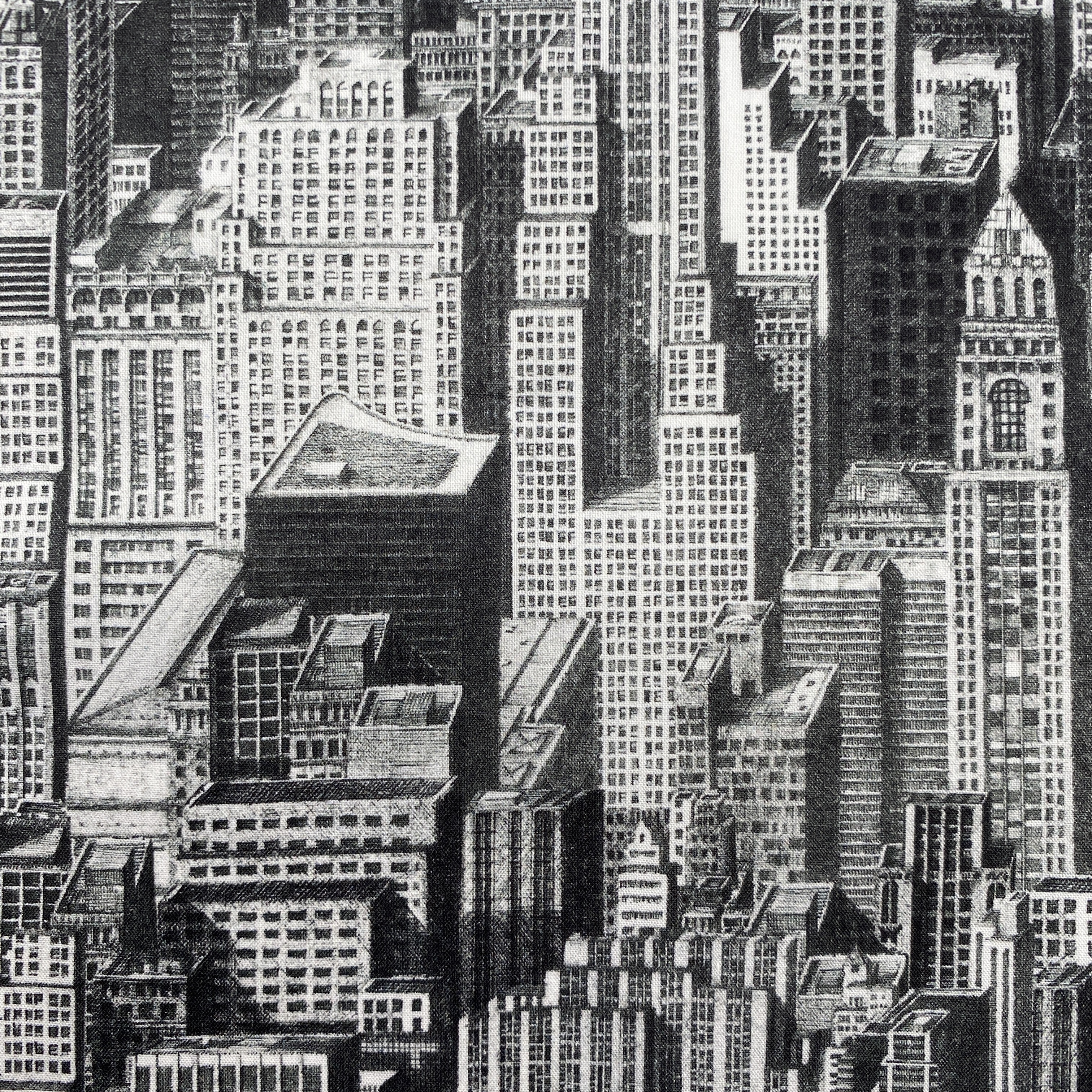200時間以上もの時間をかけて作品を完成させることで有名なアーティストTom Harperが、ブロードウェイの舞台デザインを彷彿とさせる街並みを細いライナーペンで精緻に描いたHarper Cityのカーキグリーンです。