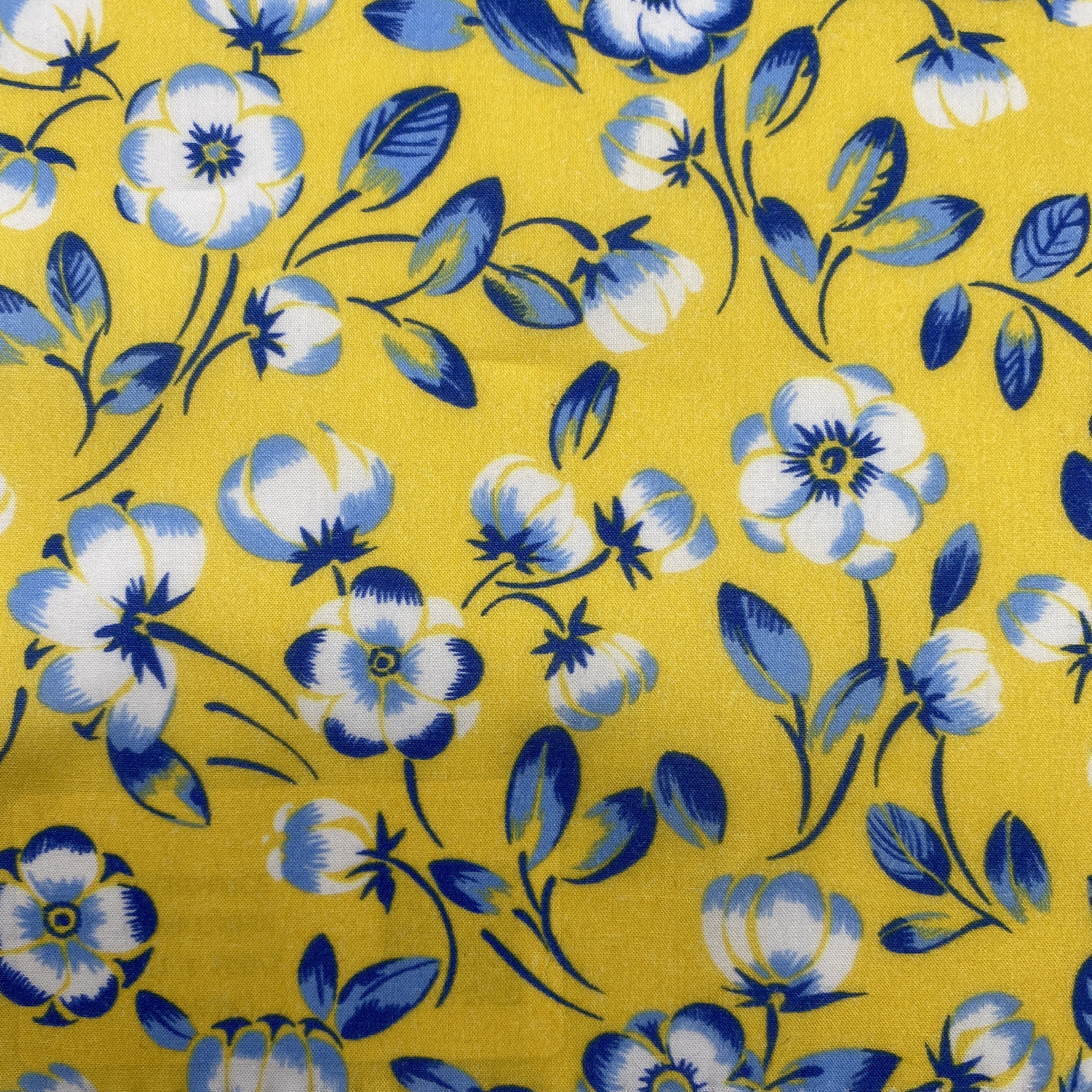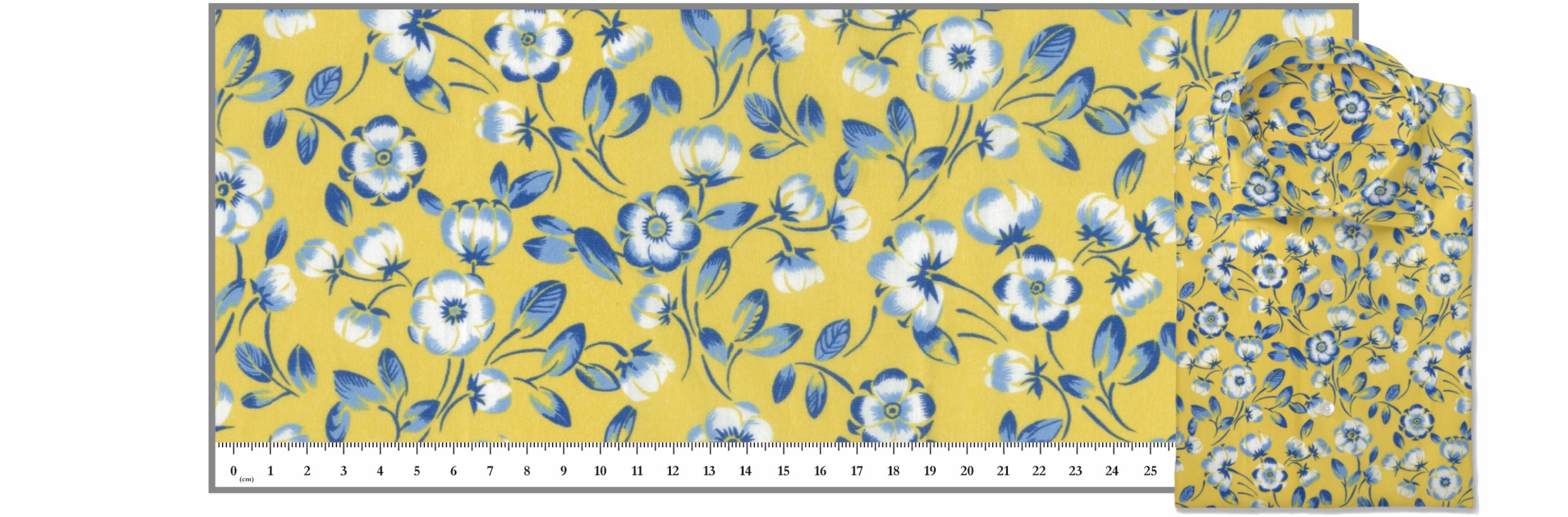 いずれにしても「とてもきれいでポップなカラーリング(特にイエローが最高にきれいですよね!)」と「とても品があってチャーミングなフラワーモチーフ」がすごく素敵な素材だと思います。