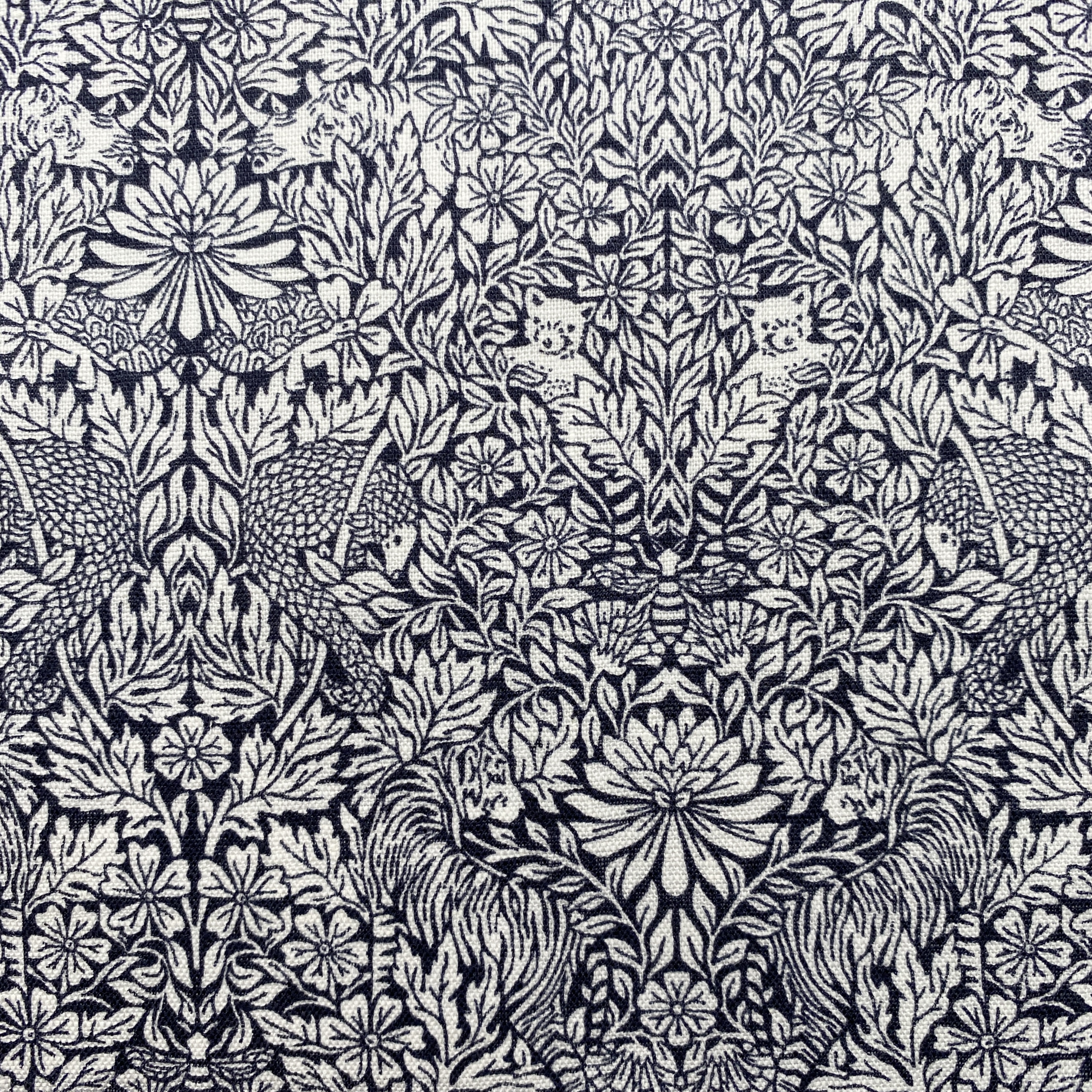 サイ、センザンコウ、レッドパンダ、ベンガルタイガー、ガラパゴスゾウガメ、ミツバチといった世界で最も絶滅の危機に瀕している動物たちを渦巻く葉の中に紛れ込ませ、アーツアンドクラフツ様式を思わせるリピートで作られたモノクロームデザイン:Survivalです。