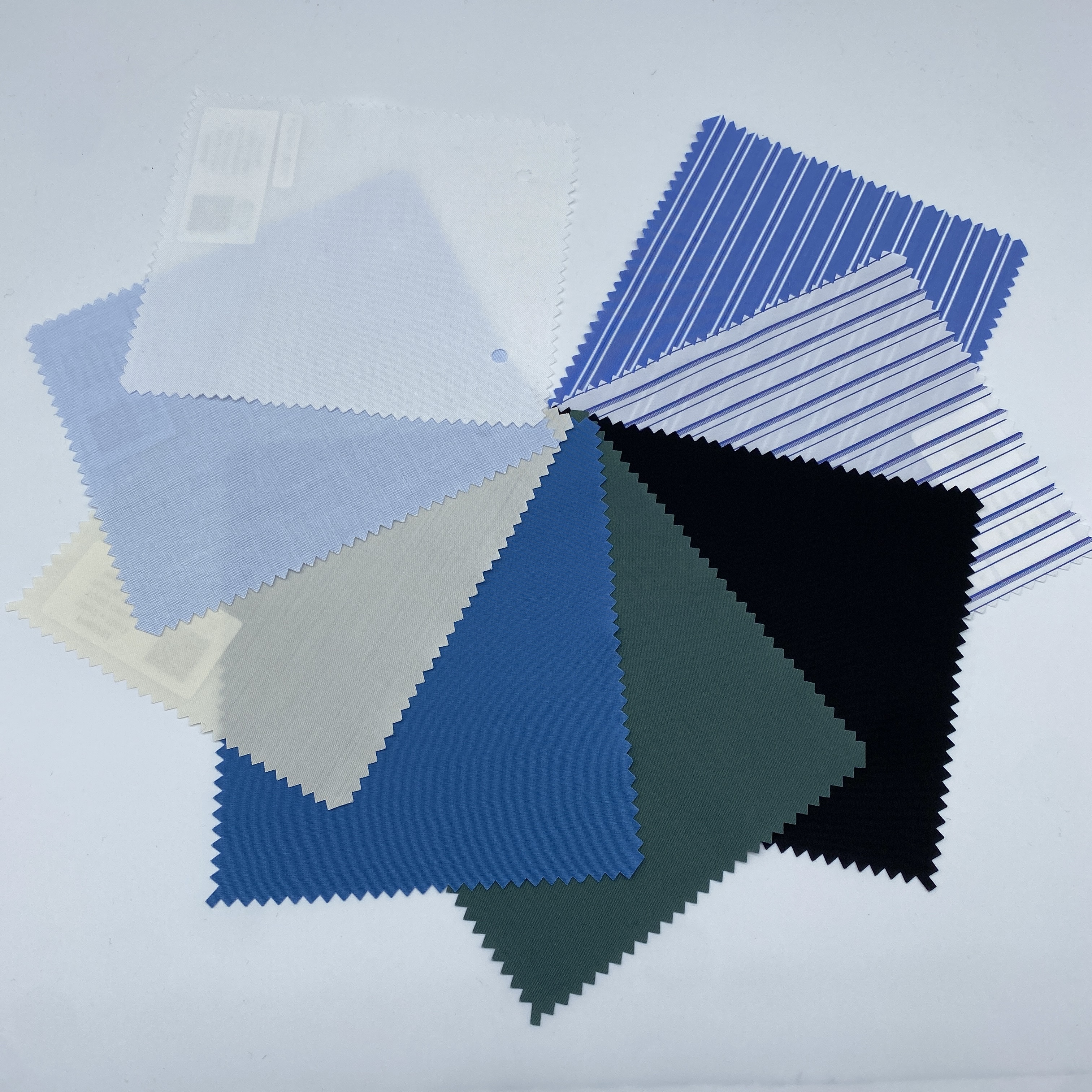 極めて細番手のロイヤルオックスフォード、左がホワイト無地で右がサックスブルー無地です。
