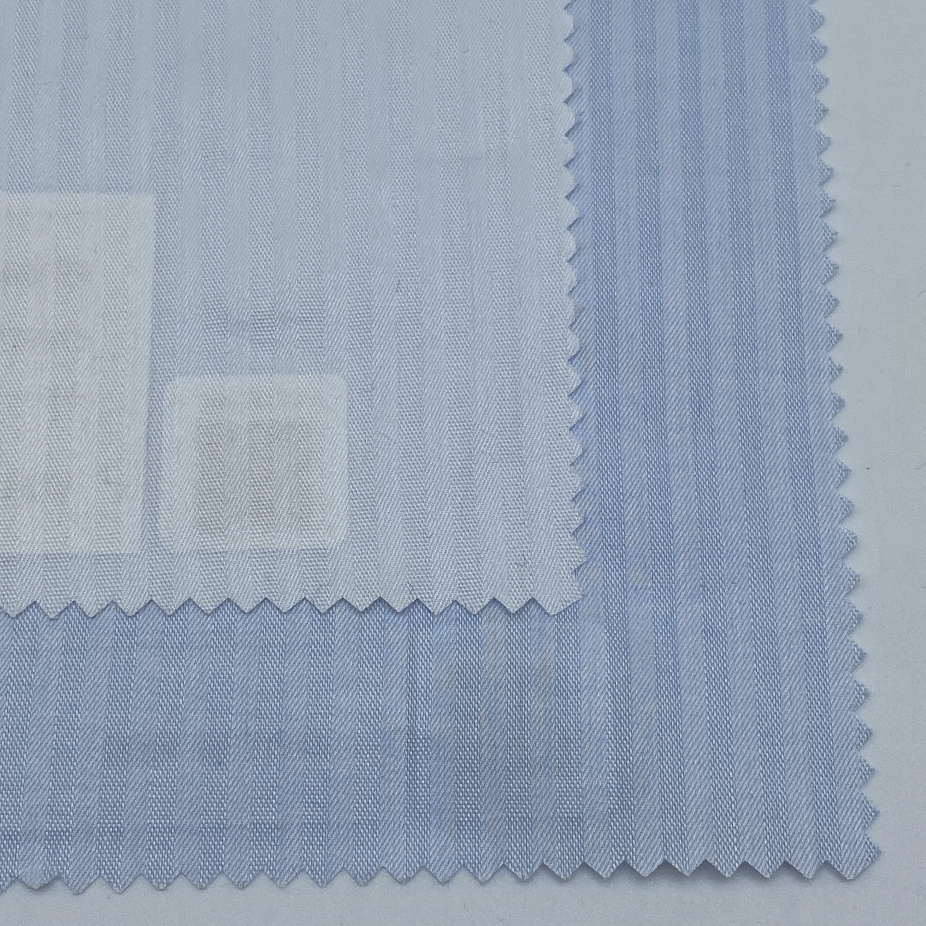 この「組織変化」は、極めて豊かな立体感とマイクロツイル部分の優雅な光沢がより際立つ効果を生み出していると同時に、細番手素材のホワイト無地/サックスブルー無地特有の「透け感」を緩和しています。