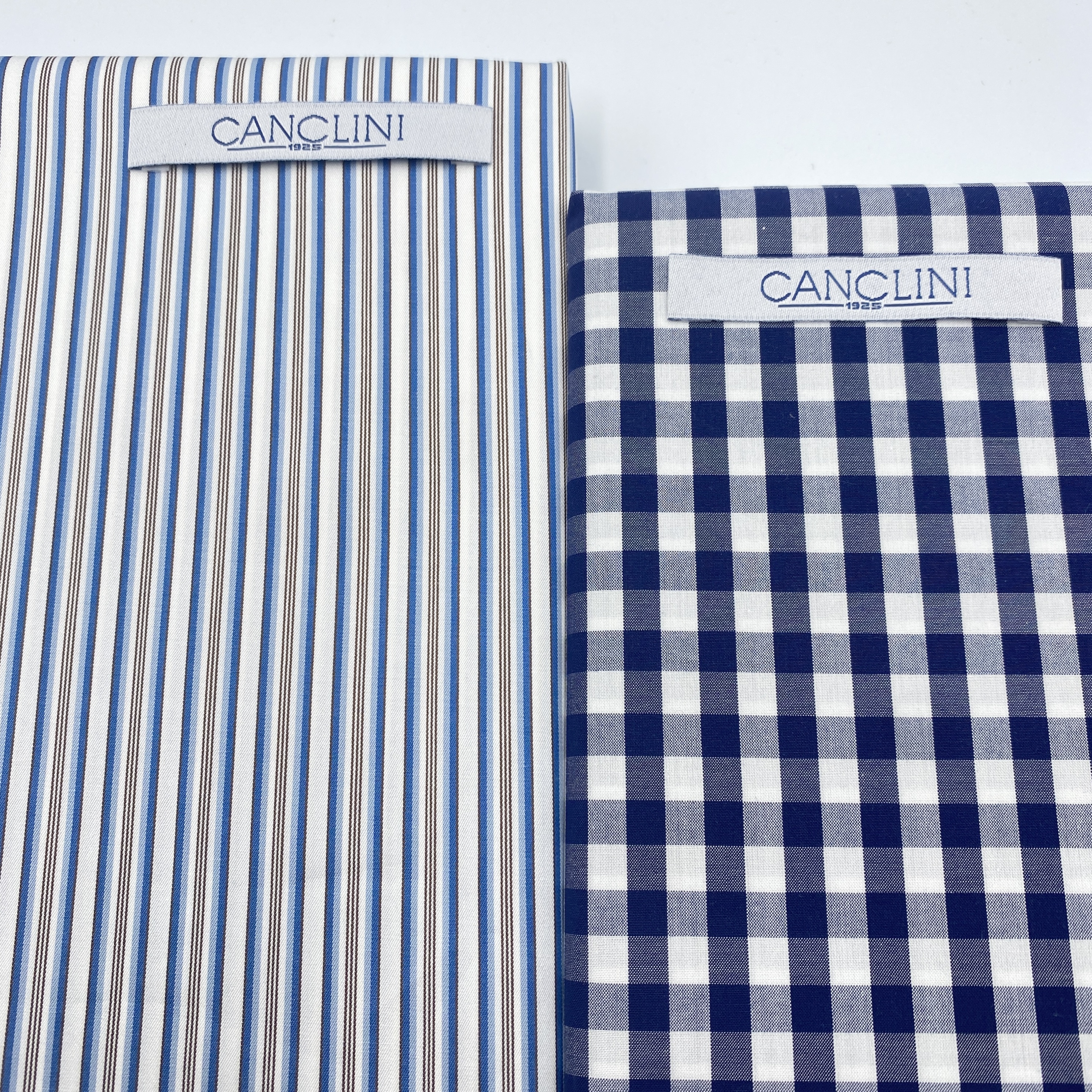 具体的には、昨年100周年を迎えたばかりの名門Italian Shirting(シャーティング:シャツ向けテキスタイル)メーカー:Canclini/カンクリーニの着分2本です。