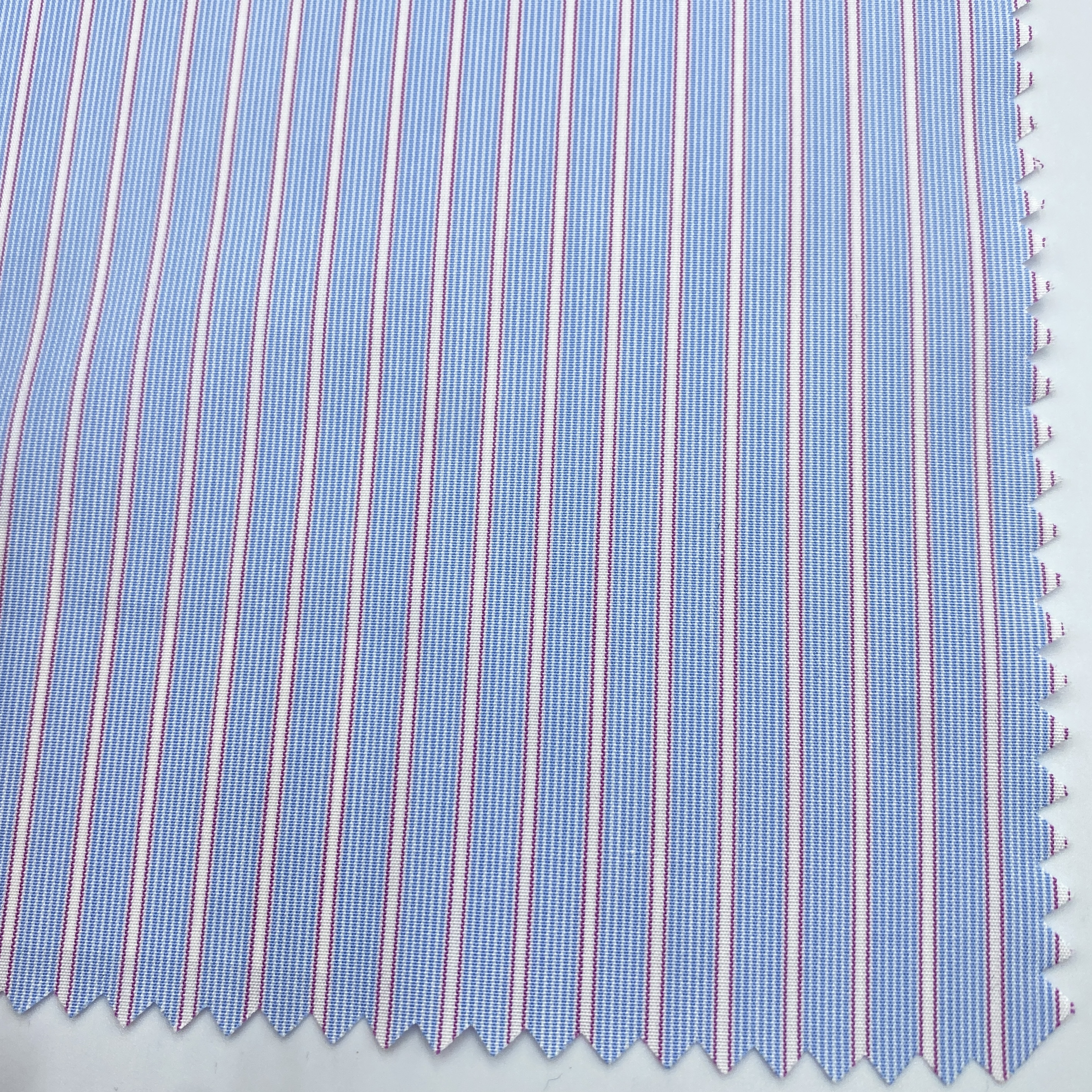 糸番手は経糸が120番手双糸で横糸が70番手単糸、組織はポプリン/ブロード、ウエイトは118/126g/mです。