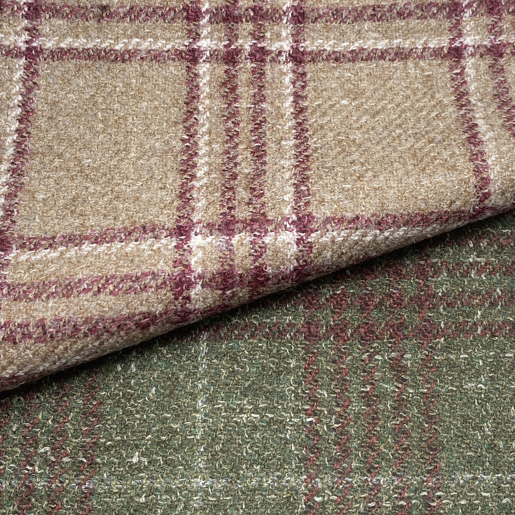 ①:トラディショナルパターンをモダンレトロなカラーリングで「料理」したTweedです。品質は100% Wool(290/300g/m)です。この4マークはかなりUKフレイヴァーが強めですよね!が、触ってみるとかなりラグジュアリーなのがイイ!僕は大好物です。皆さんはいかがでしょう?