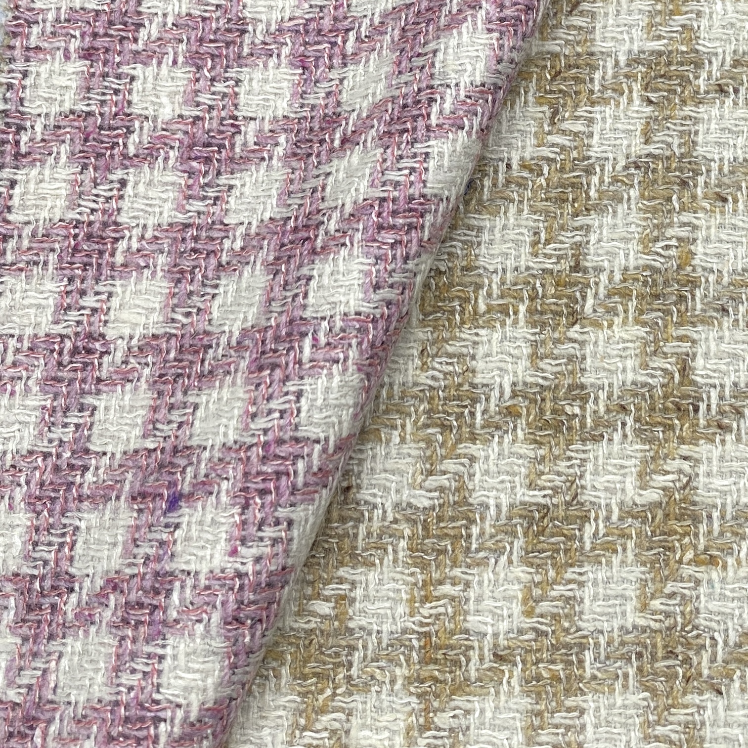 ⑥:60% Wool + 18% Silk + 16% Polyamide + 6% Linen(330g/m)の「4者混」Jacketingです。約0.8cmとやや大きめサイズのハウンズトゥースと超スーパーキレイなカラーリングが見事ですよね!そしてすごくカッコいい!!このカラーですから淑女にも大オススメです。僕もすごく作りたいです。
