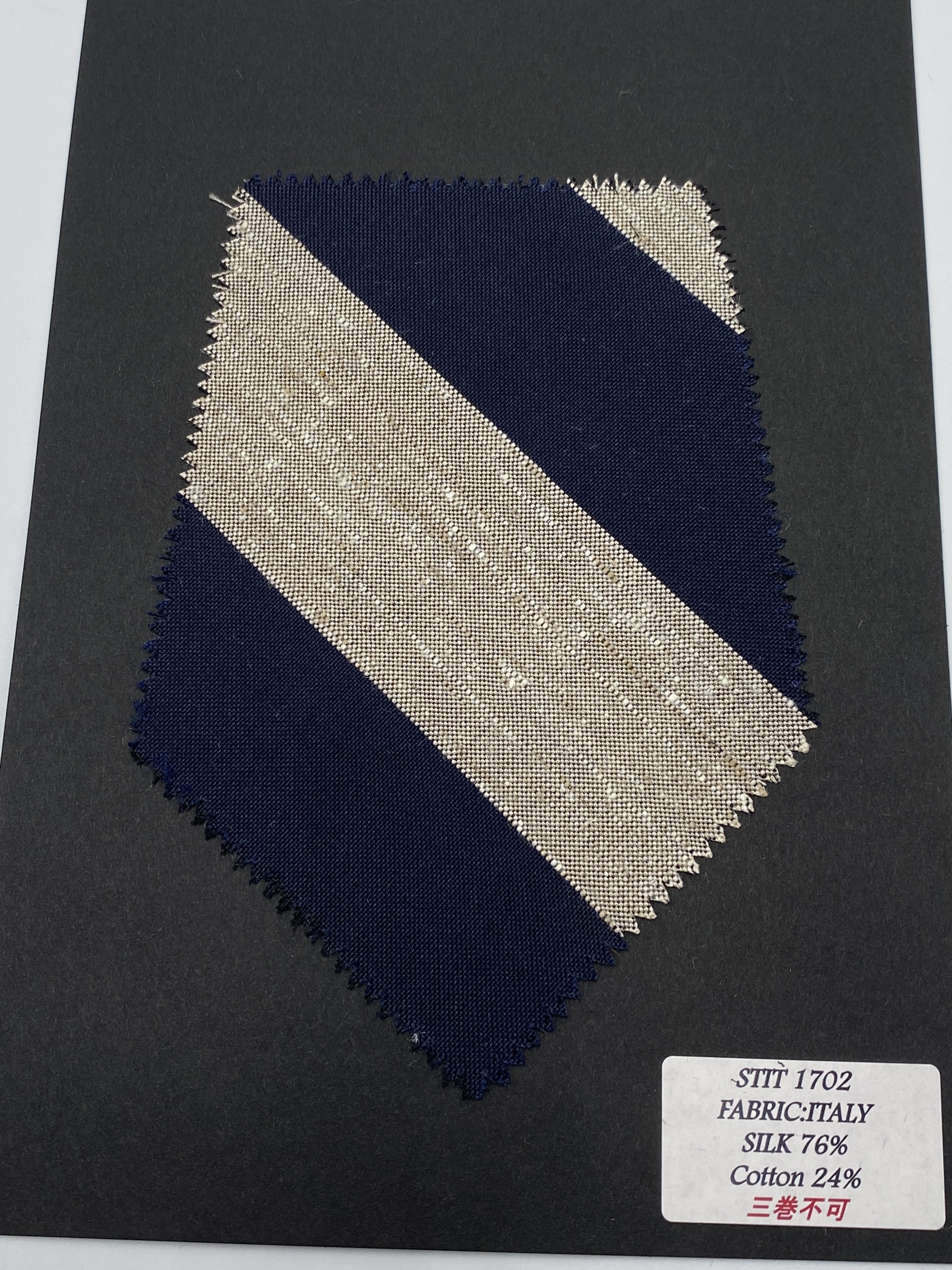 品質はストライプの右(76% Silk + 24% Cotton)以外すべて100% Silkです。