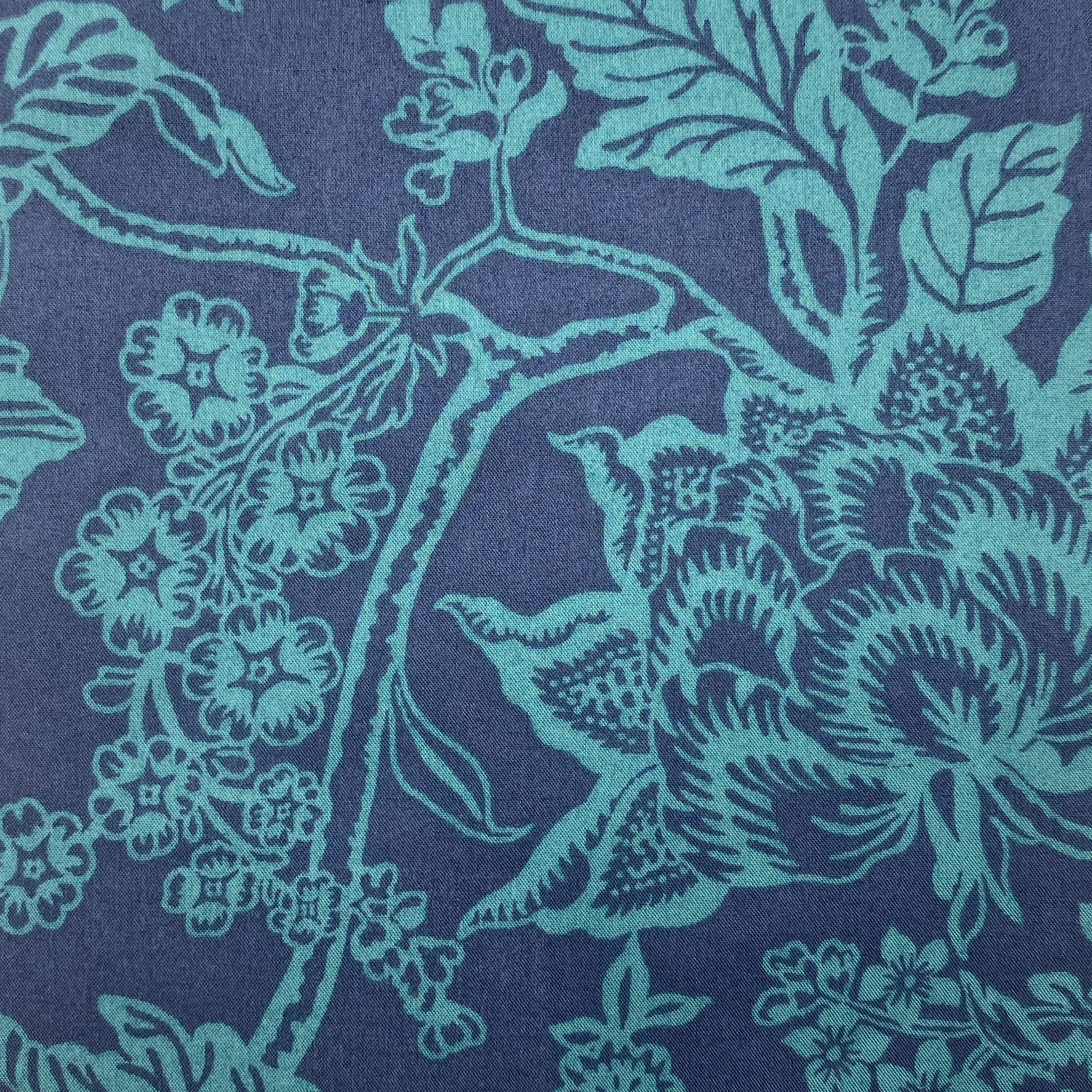 豊かなダークカラーの地色を背景にまるで素材に刺繍されているかのようにも見える美しい装飾的なフラワーモチーフが印象深いパターンです。