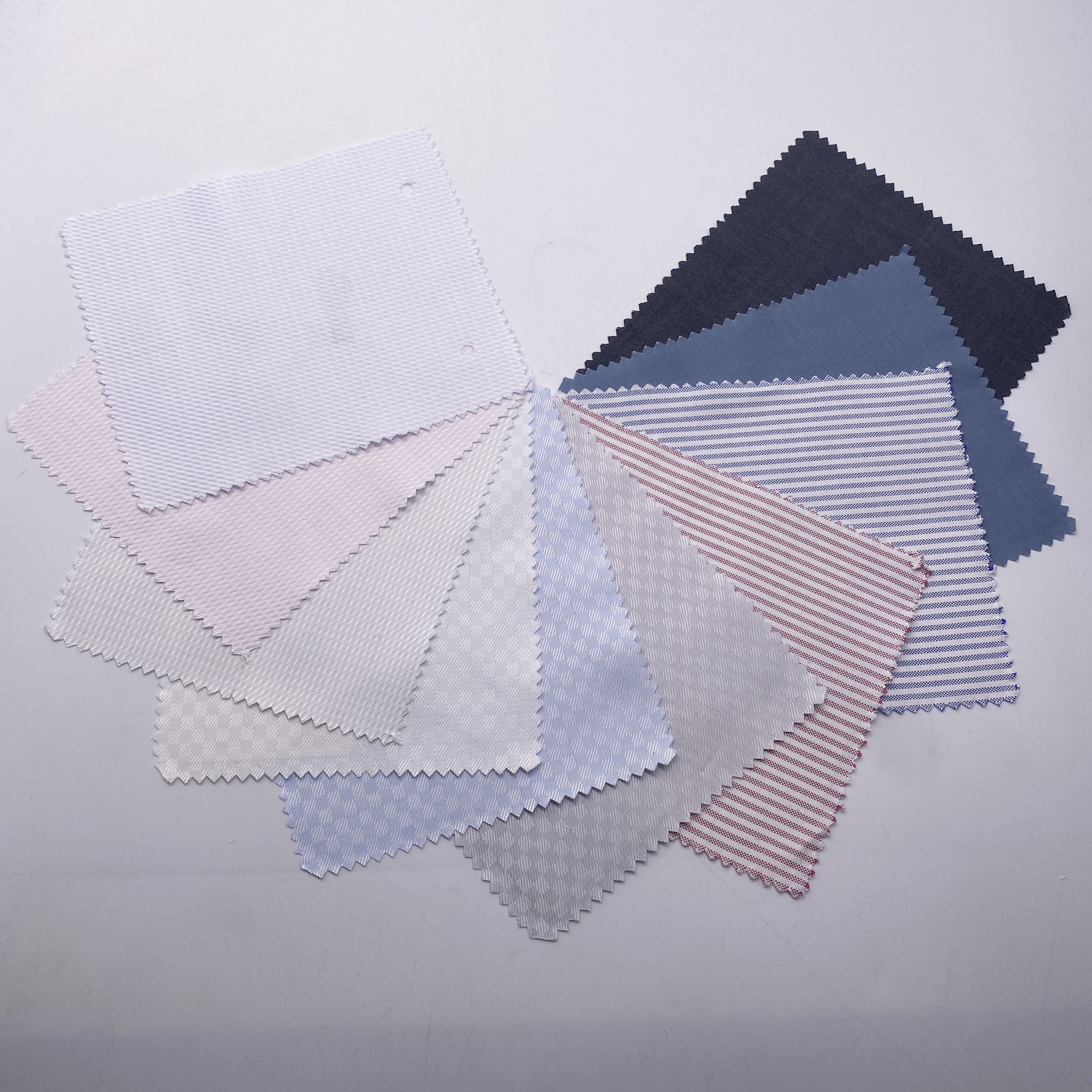 数年前までのThe Royal Caribbean Cotton Gold Lineは「経糸(タテイト)・緯糸(ヨコイト)ともに120番手双糸(ソウシ)を使用した生真面目なクラシック柄のドレスシャツ向け素材」だけがコンパイルされていましたが、ここ最近はこういったより付加価値の高いユニークな新作も投入されるようになりました。