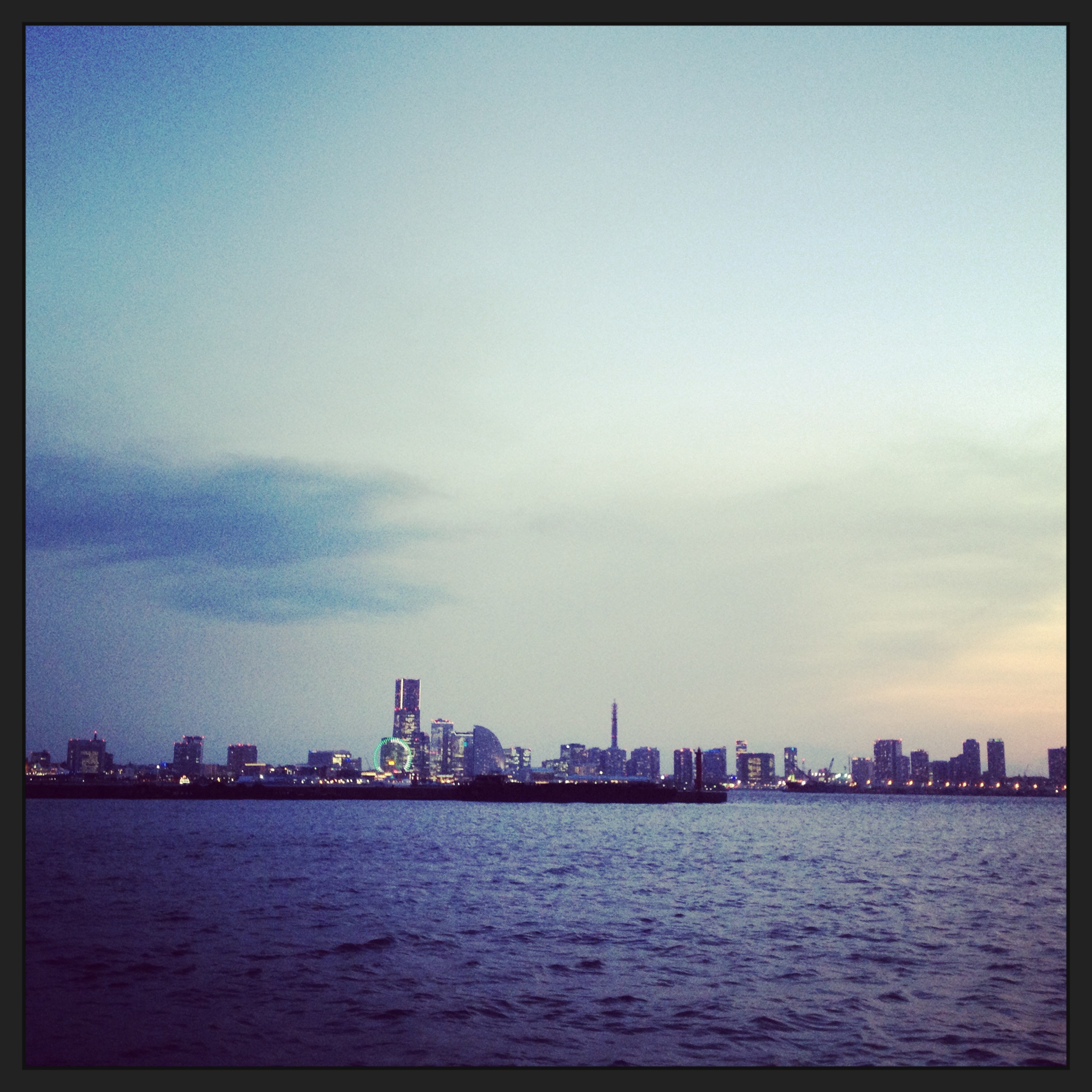 そうこうしている内に日没した、横浜港。