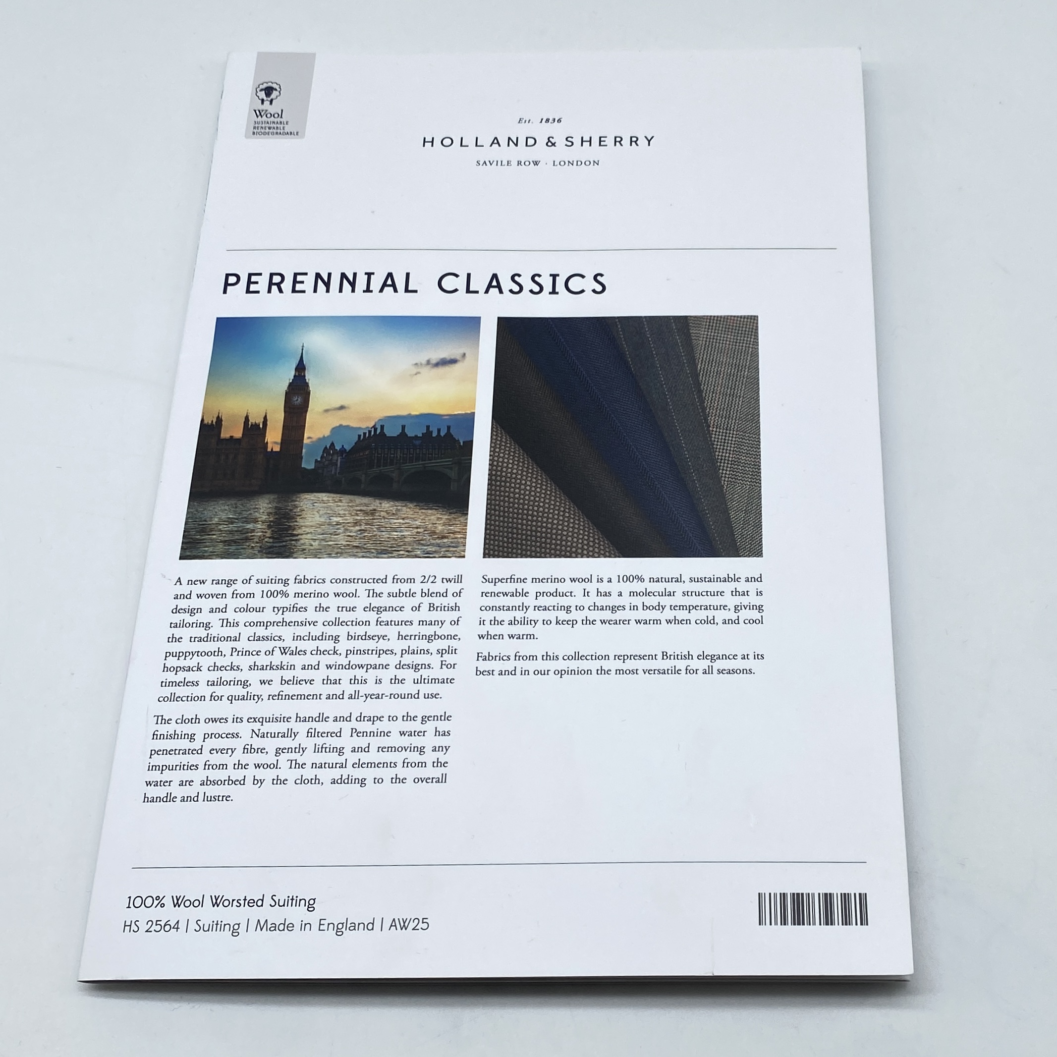 「永続的な」「多年草」「四季を通じて続く」といった意味を持つPerennialと「古典」「最高傑作」「一級品」といった意味を持つClassciを組み合わせた名前が冠せられたこのPerennial ClassicsはHollans & Sherryを代表するSuting(スーティング:スーツ向けテキスタイル)コレクションです。
