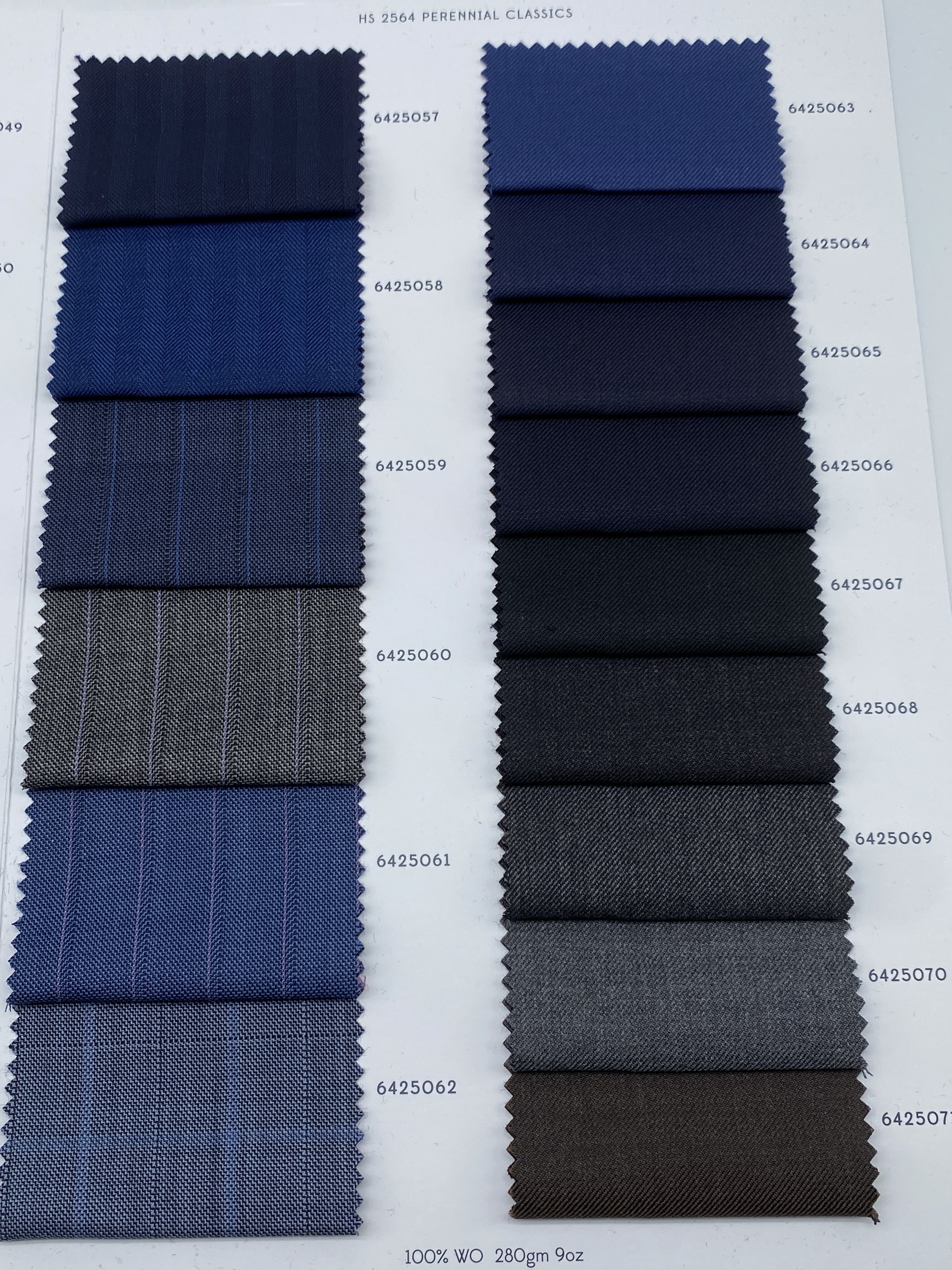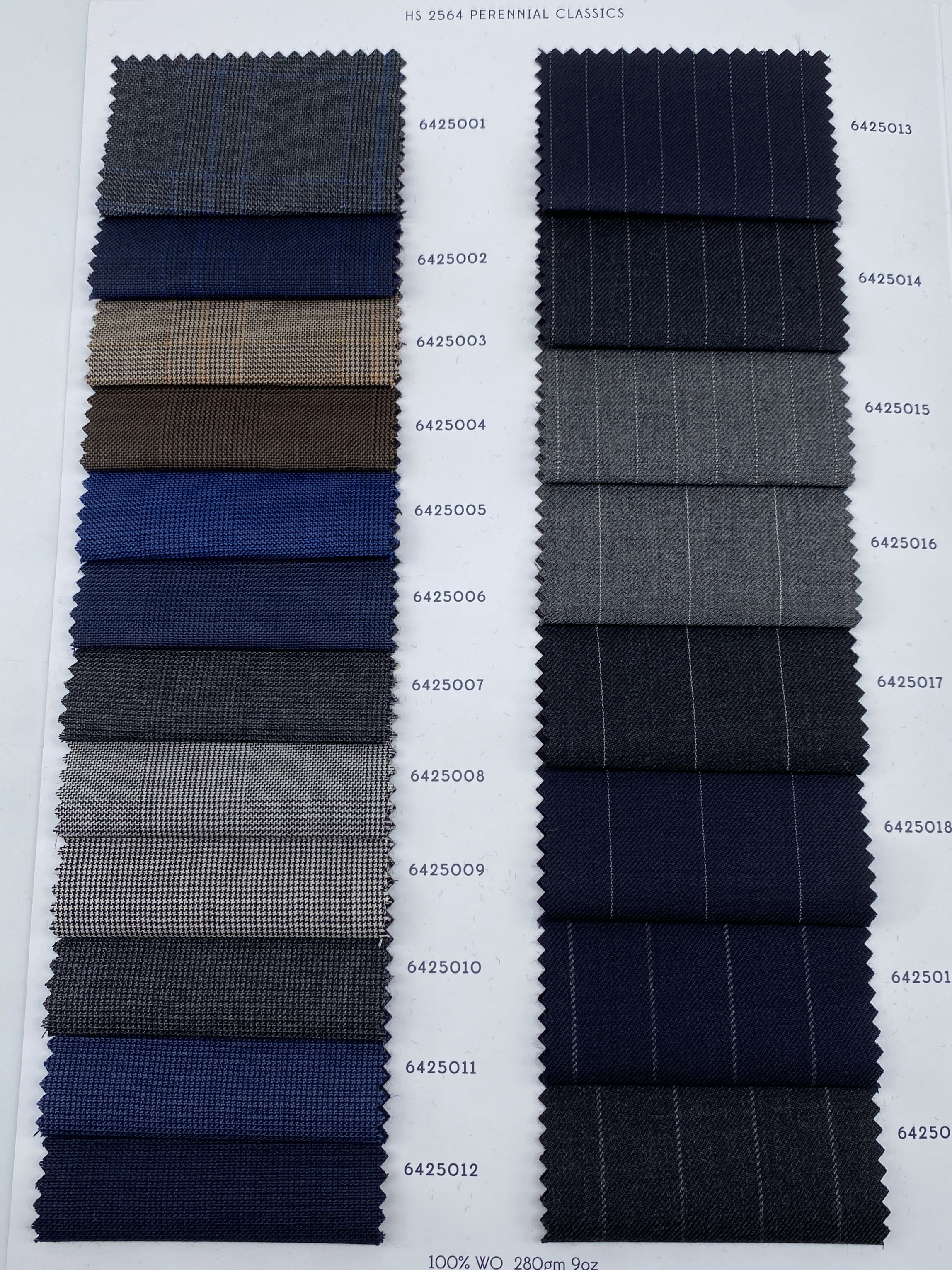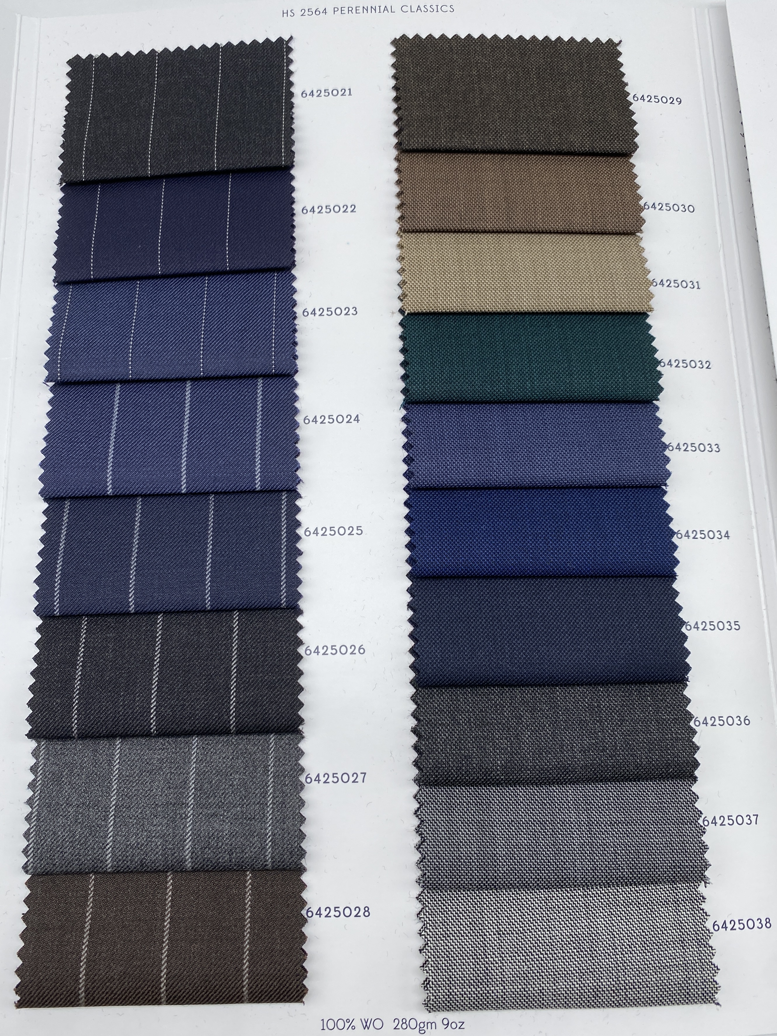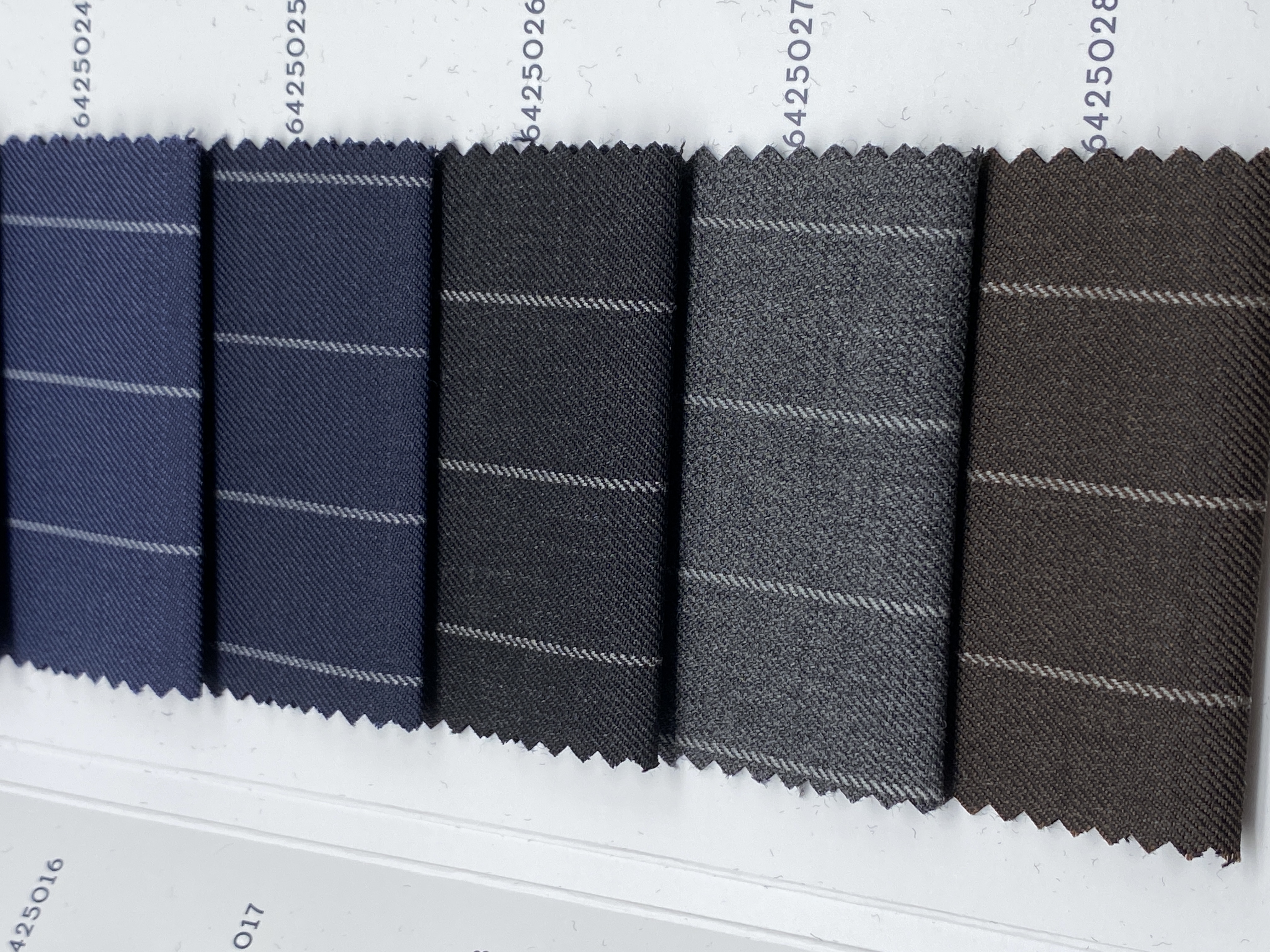 色柄はこの素材感だからこそ映えるトラディショナルパターン(グレンチェック/ハウンズトゥース/ピンストライプ/ボールドストライプ/シャークスキン等)とプレイン(無地)で構成されています。