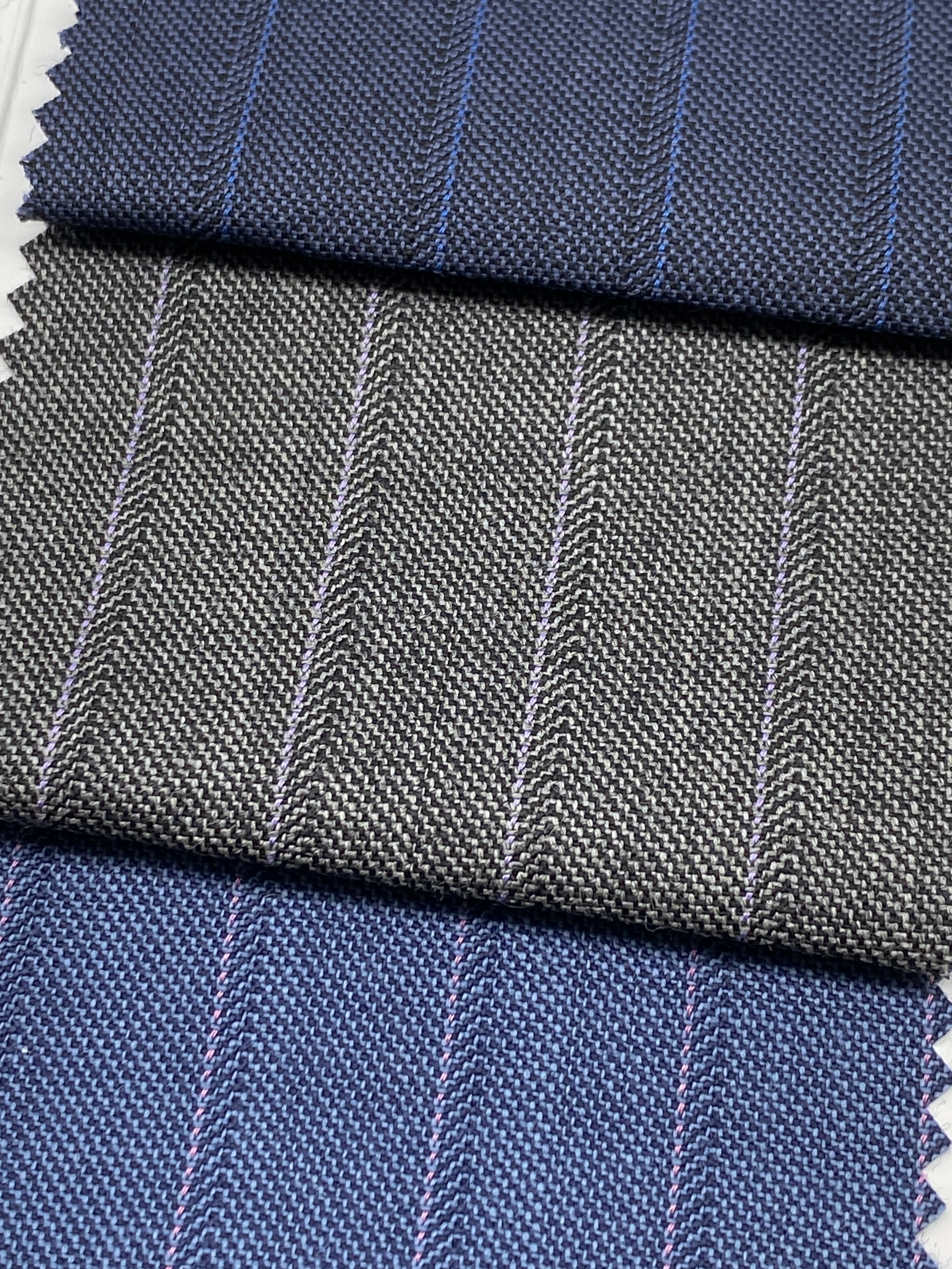 ベースの組織がシャークスキンでそのシャークスキンを織変化させることでストライプを生み出している「ヒネリ」がイイですよね!