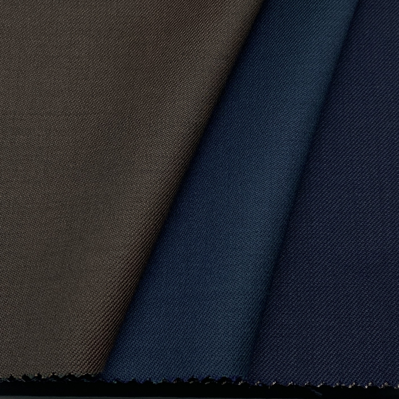 17.0μという究極の原毛のみを使用したFour Seasonsタイプのツイル(綾織)組織ボディで、品質は100% Super 130’s Wool(270g/m)です。