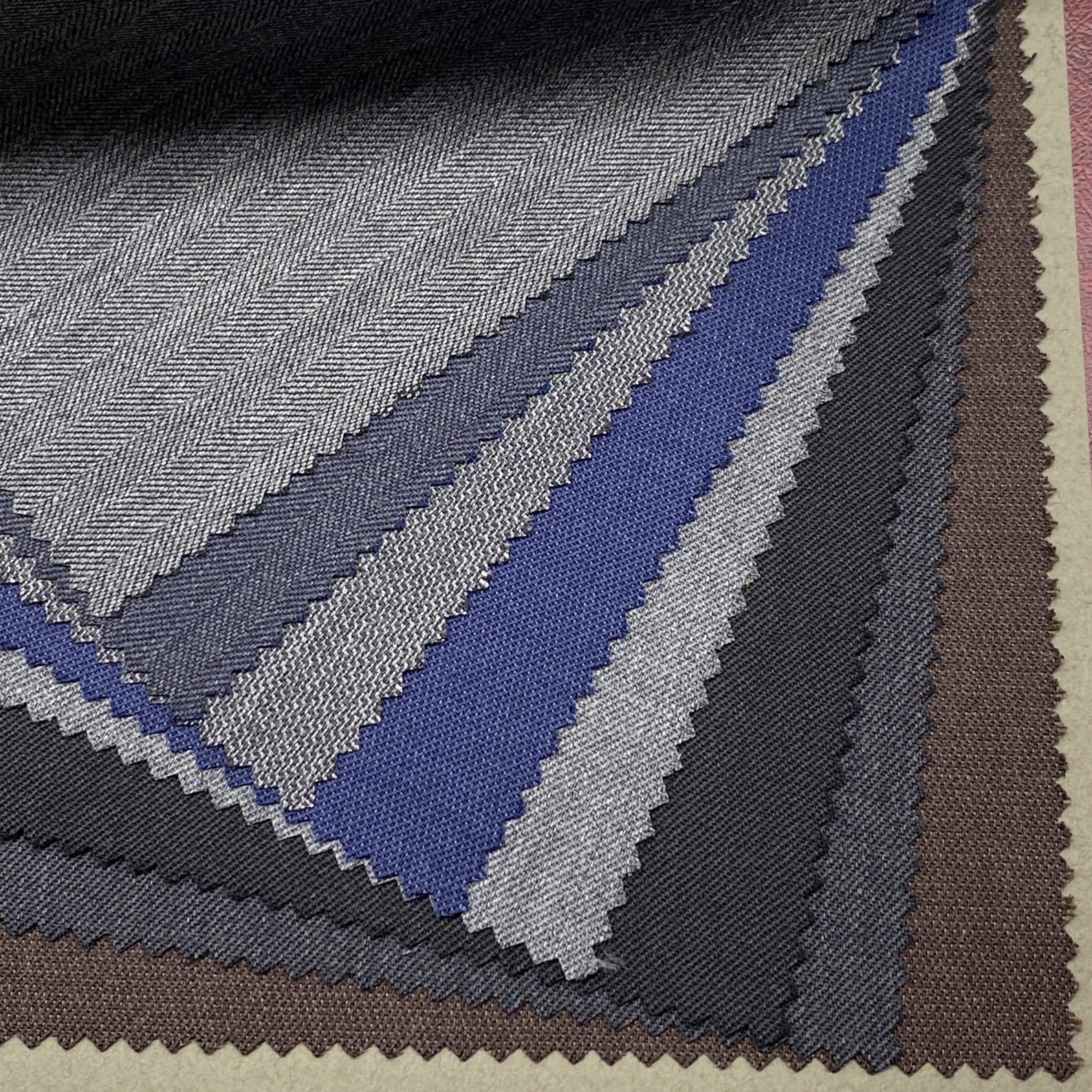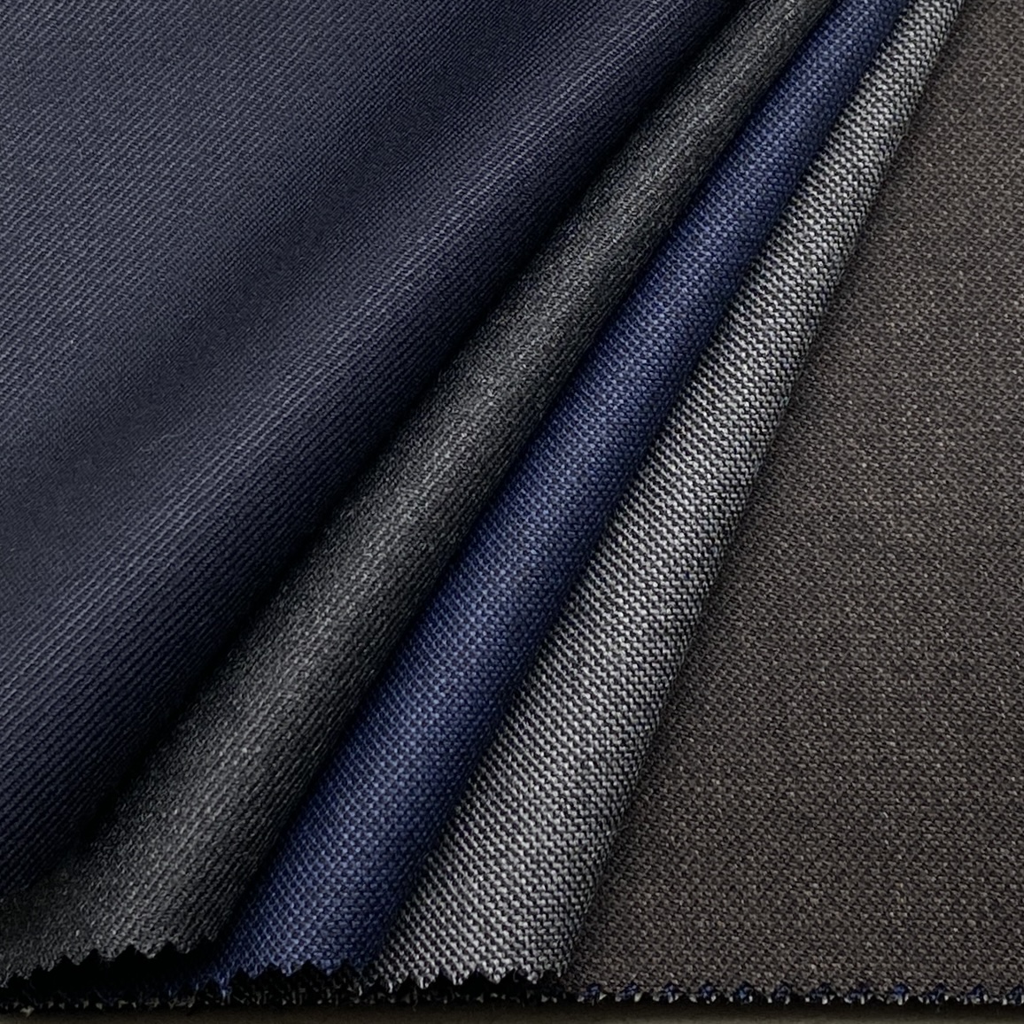 品質は100% Super 100’s Wool(260g/m)、組織はツイル(綾織)です。