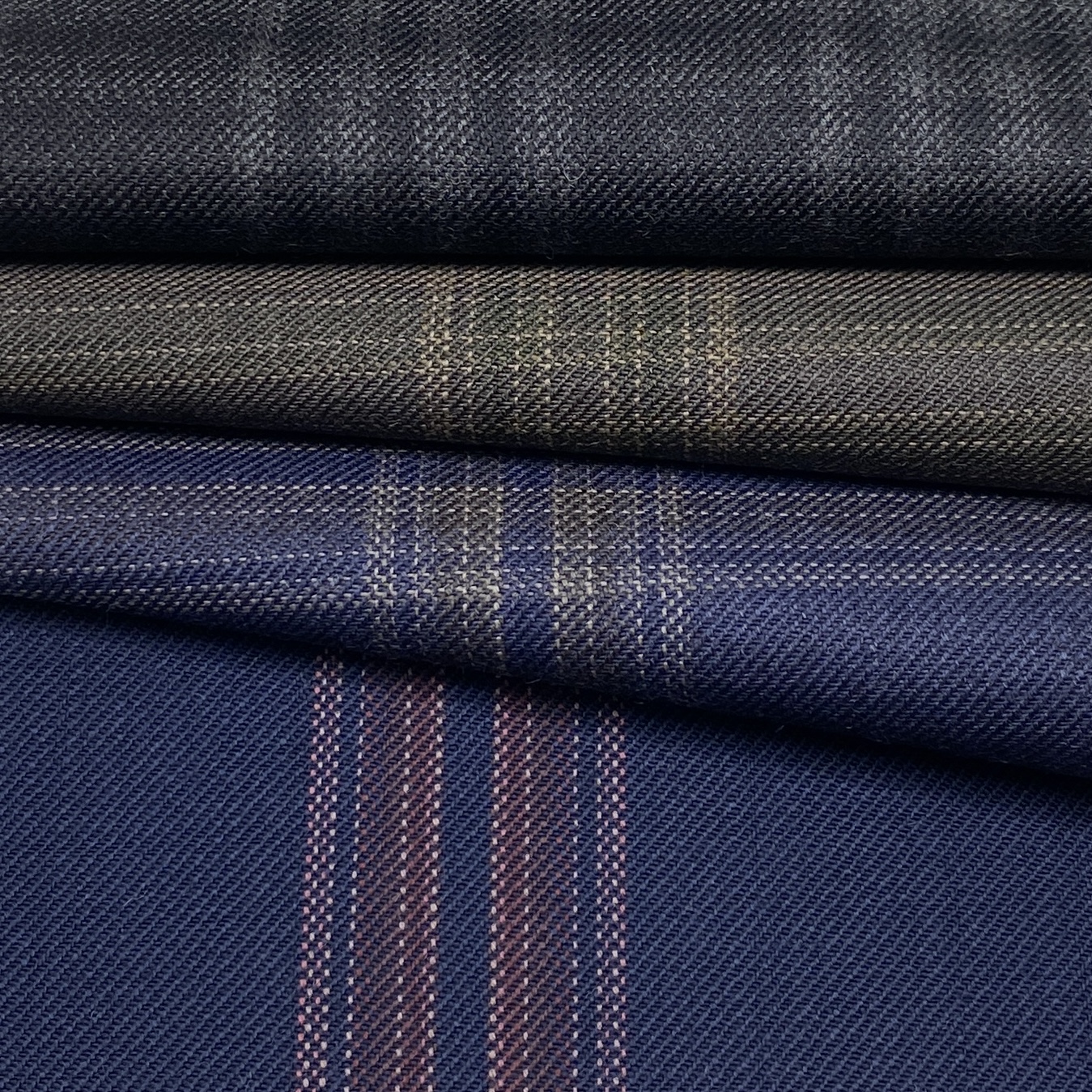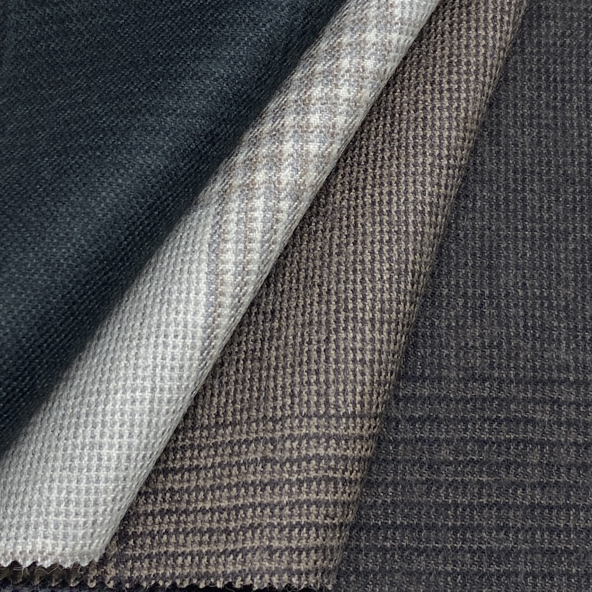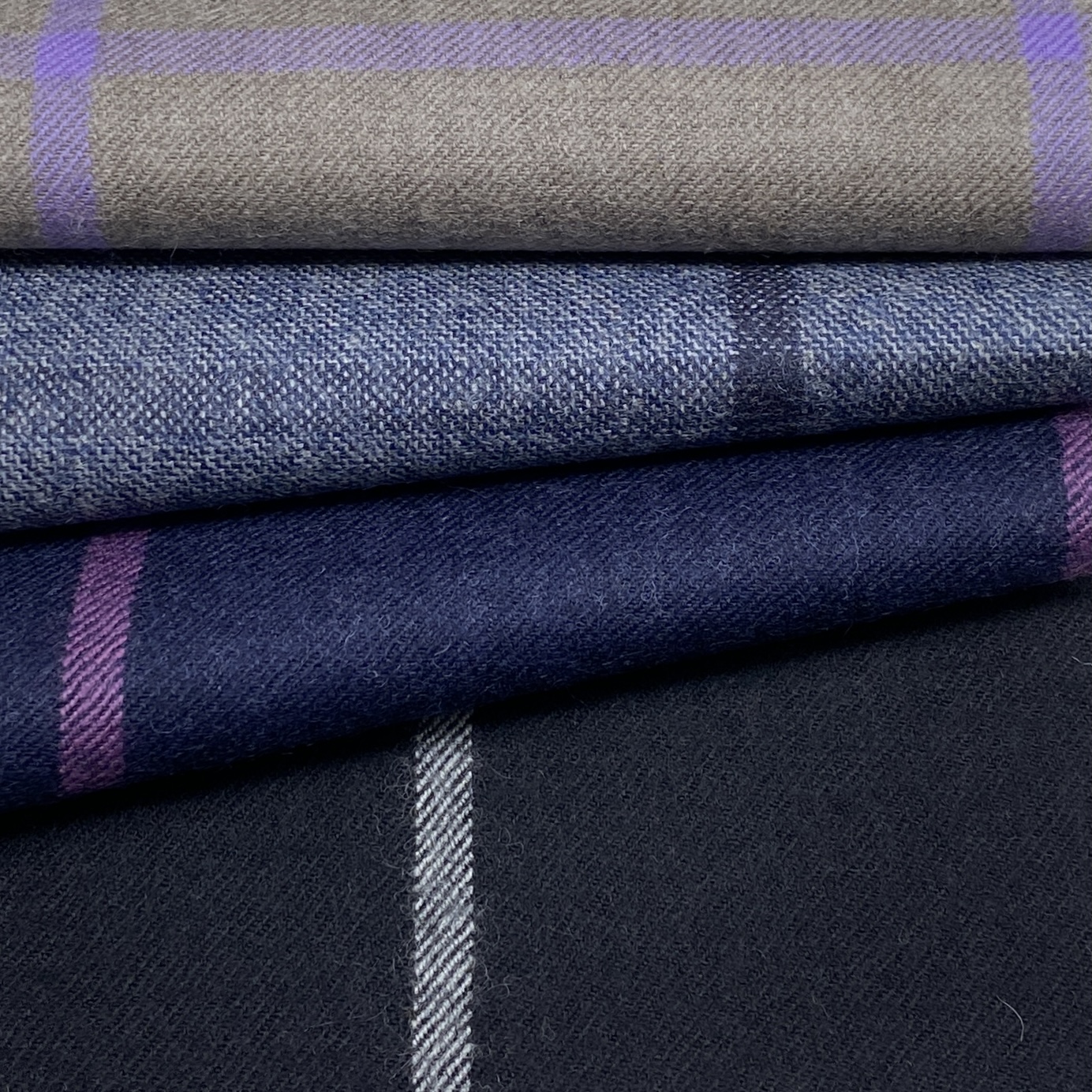 ちなみに、Autumn/Winter向けコレクションの品質は100% Wool(270/300g)で多くがクリアカットのツイル(綾織)組織ですが、一部ミルド(起毛)加工を施した素材もあります。