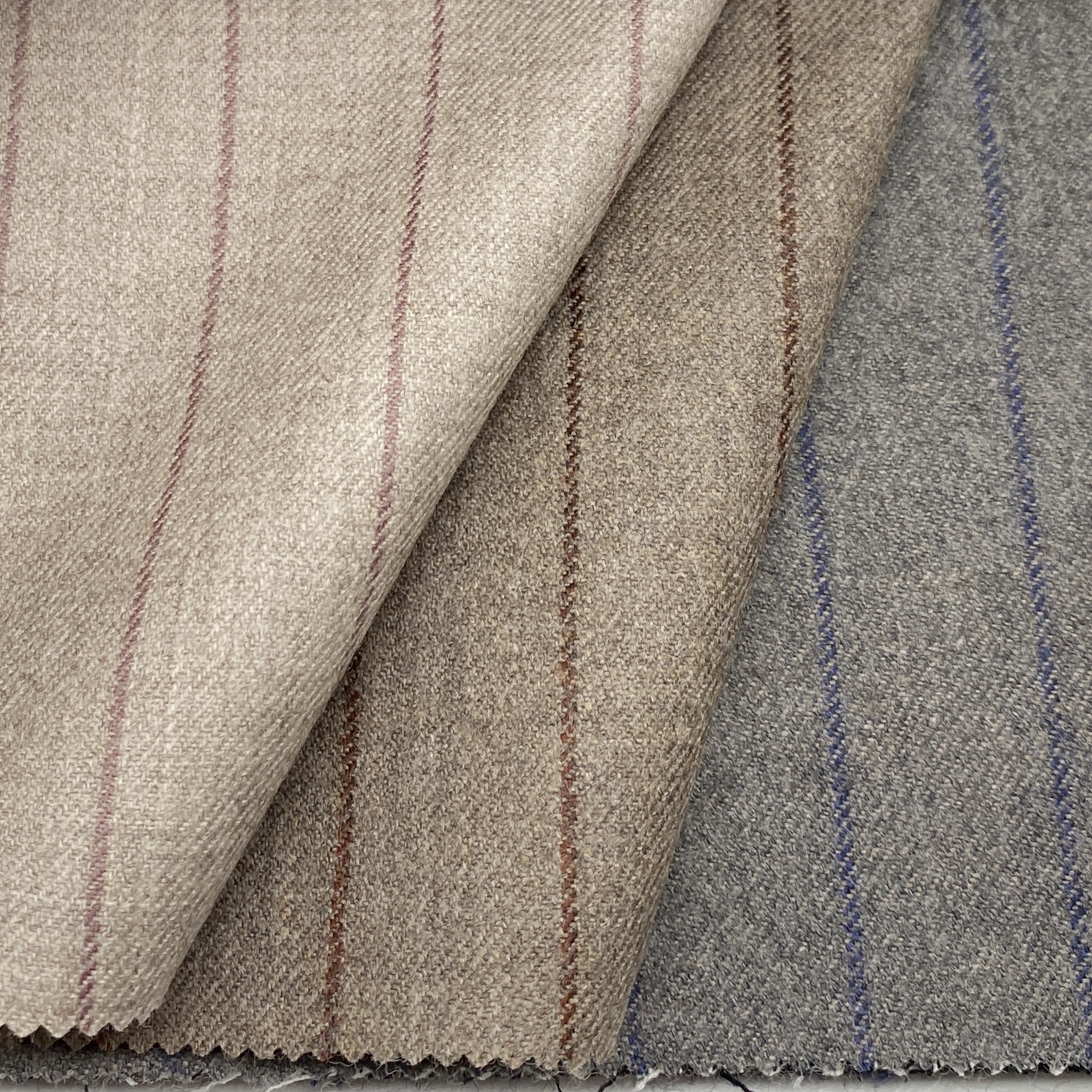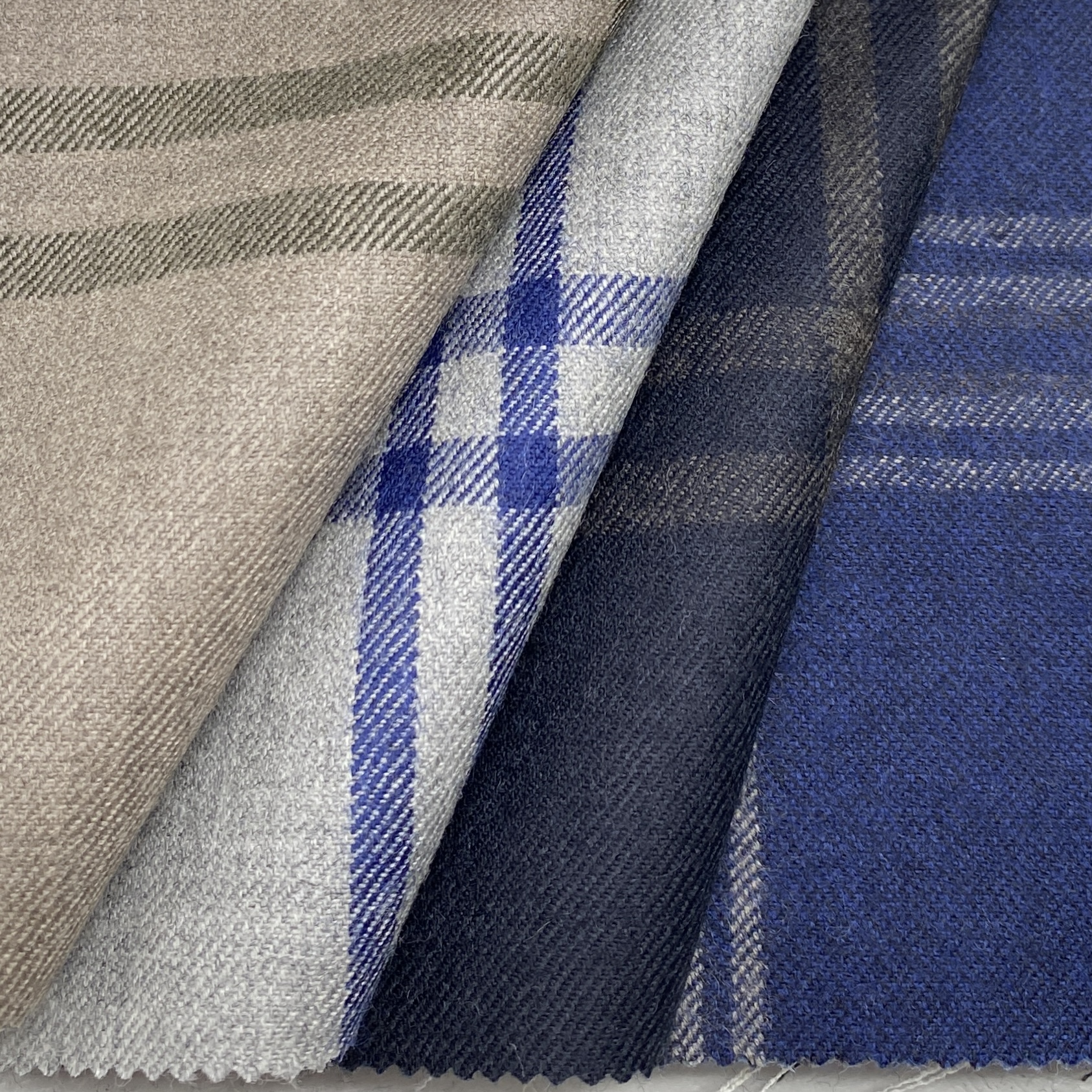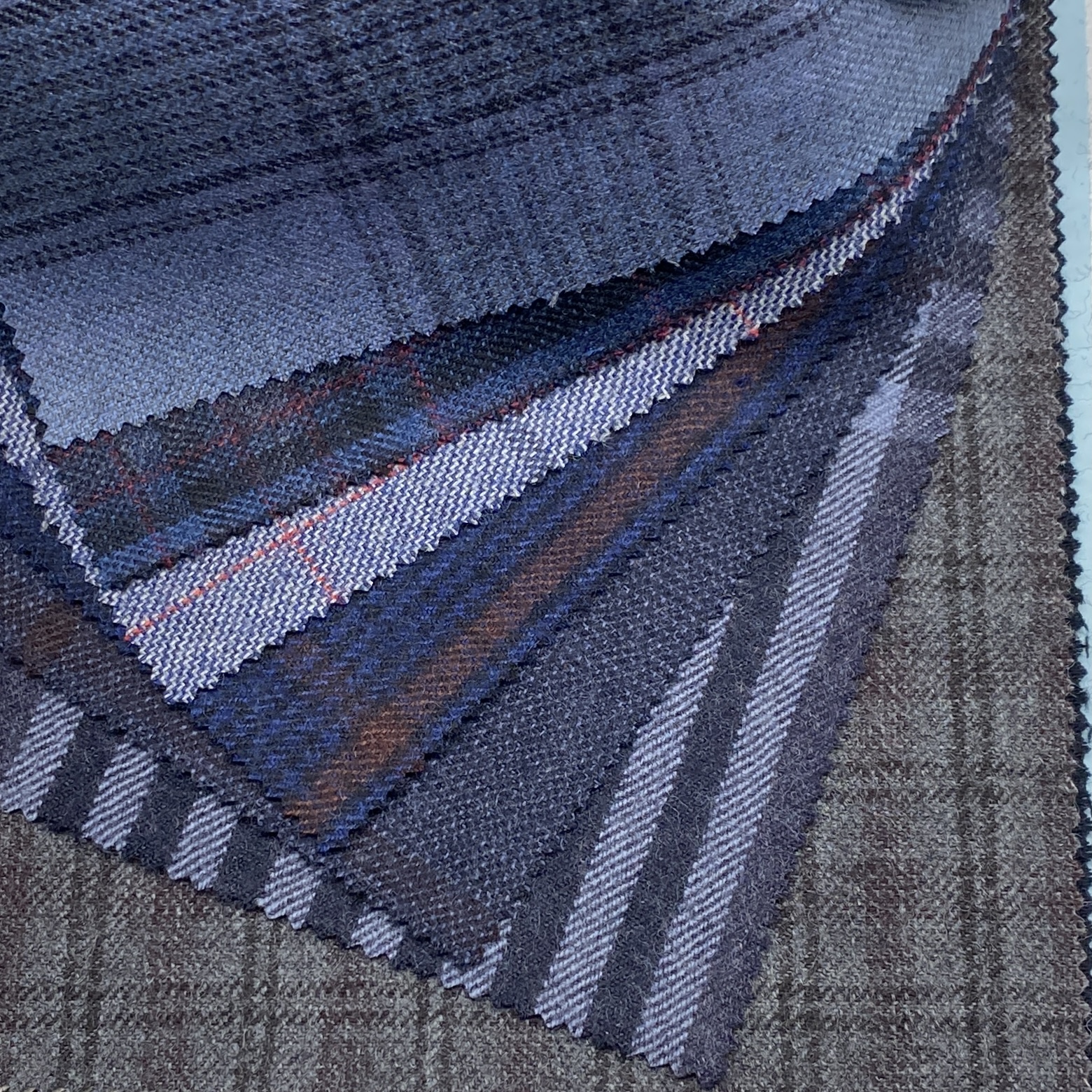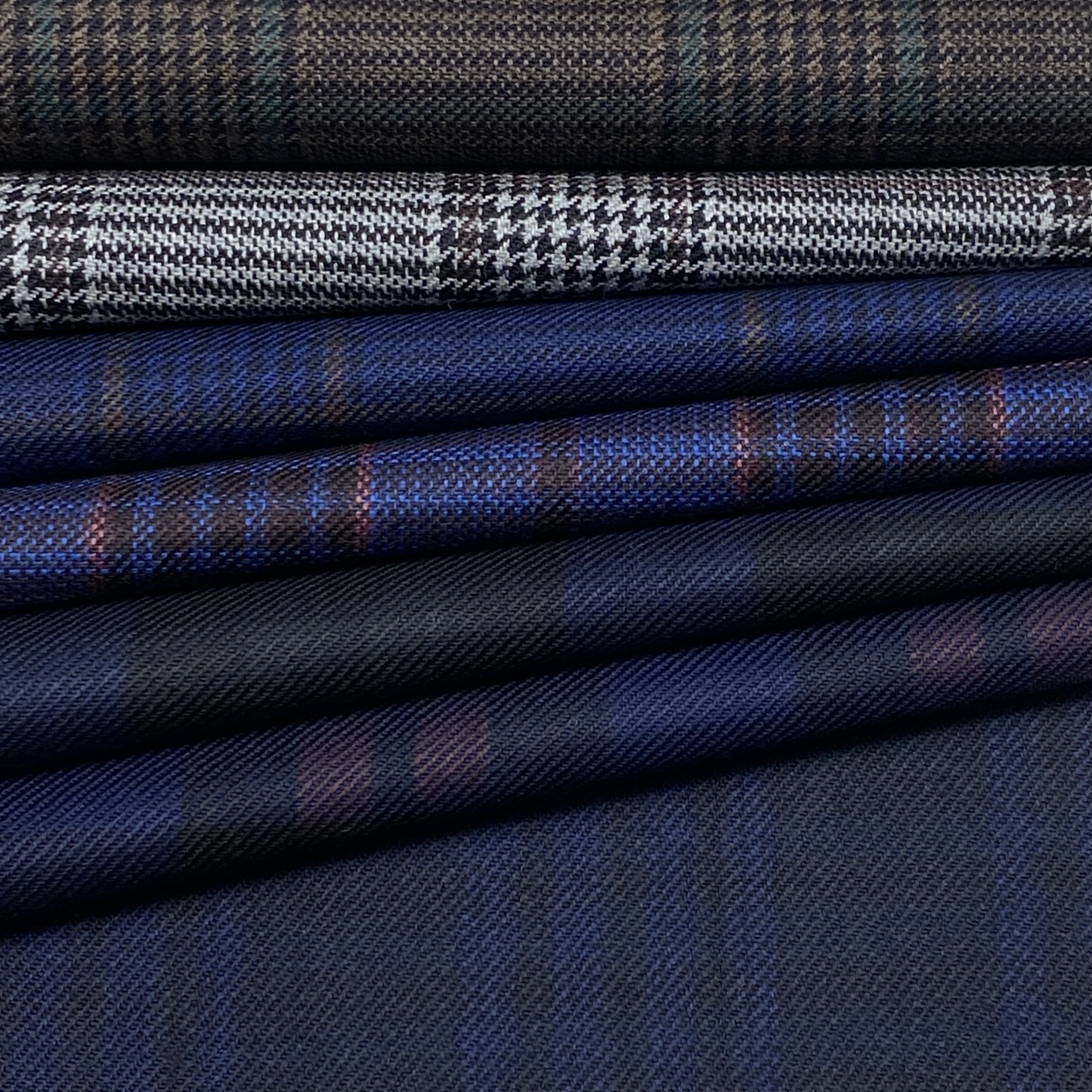 ちなみに、Autumn/Winter向けコレクションの品質は100% Wool(270/300g)で多くがクリアカットのツイル(綾織)組織ですが、一部ミルド(起毛)加工を施した素材もあります。