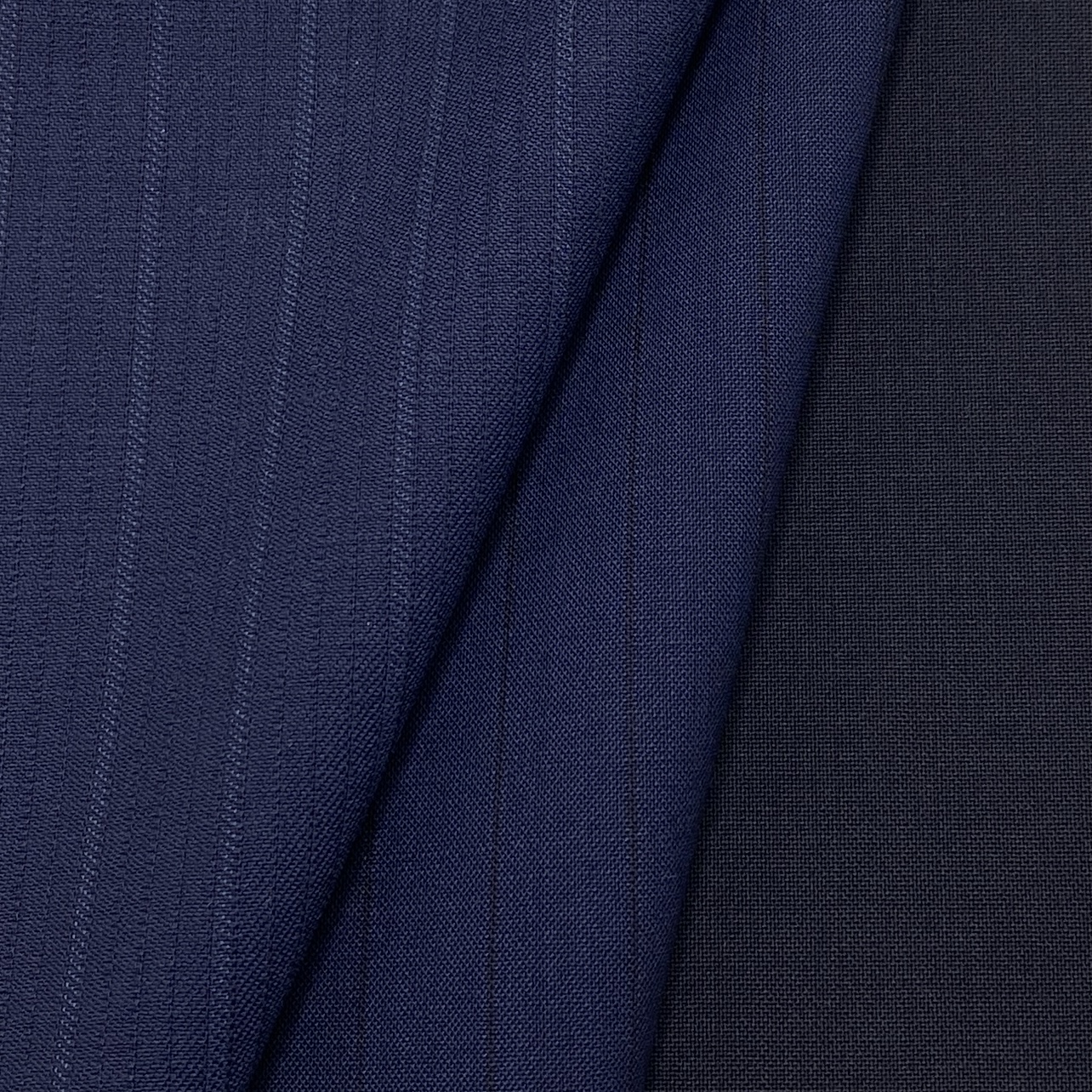 深く高貴なNavy Blue、美麗で豊かな光沢、遠目には無地にも見えるさりげないストライプ、そして15 MilMil15ボディ。