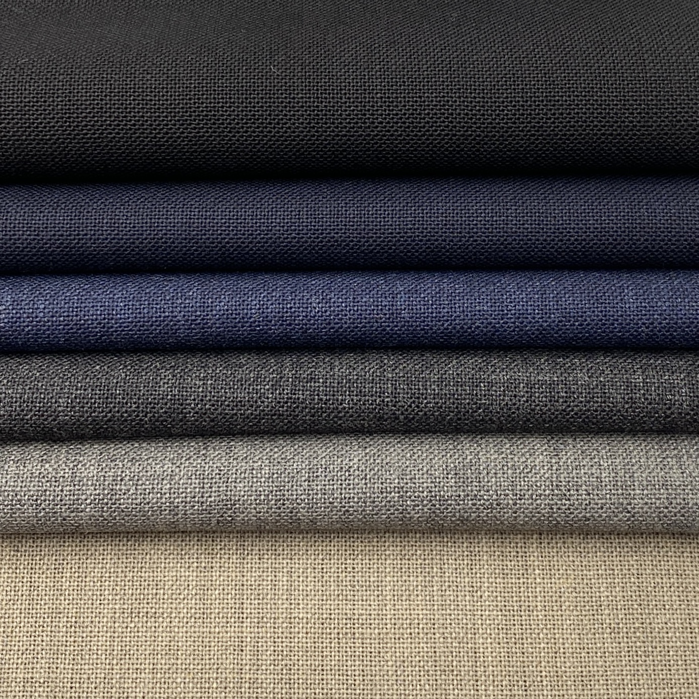 具体的な品質は60% Kid mohair + 40% Super 120’s wool(250g/m)で組織はプレインウィーヴ/トロピカルです。