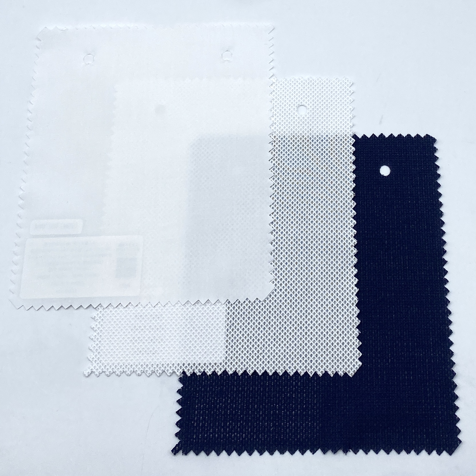 品質は100% Cotton、糸番手は経糸・緯糸ともに80番手双糸です、方は左がWhiteで右がNavy Blueです。