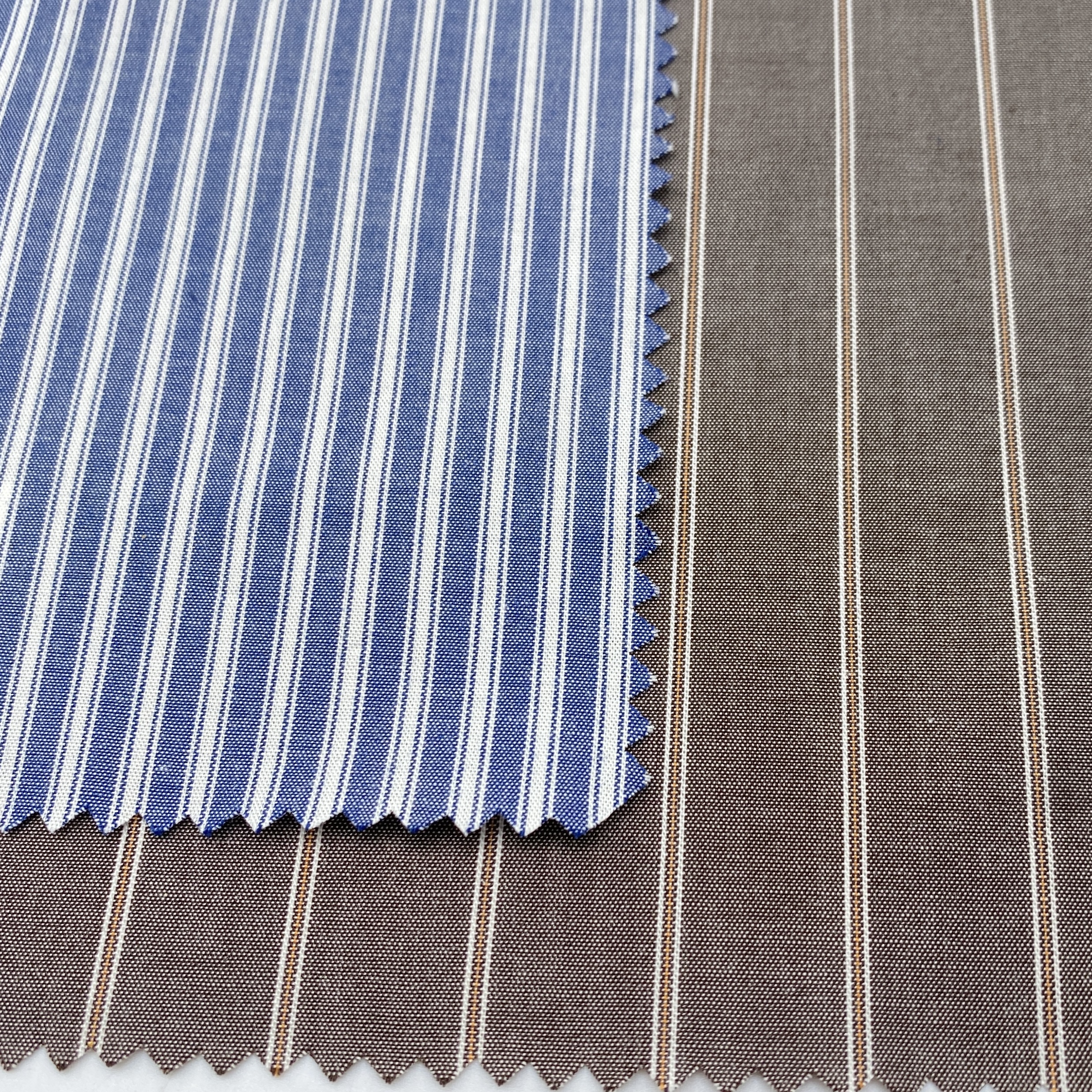 品質は100% Cotton、組織は左がポプリン/ブロードで右がマイクロツイル、糸番手は経糸・緯糸ともに50番手単糸です。