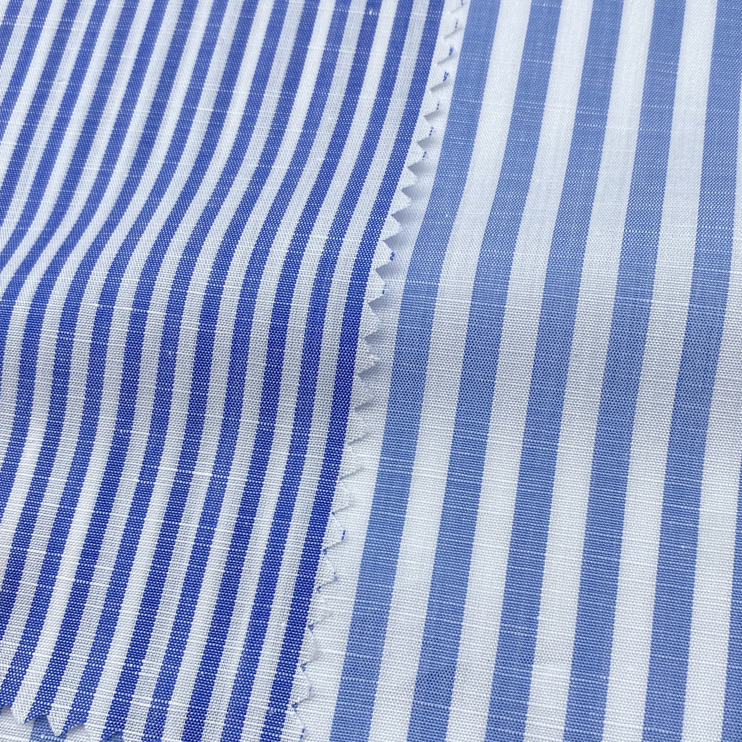 具体的な品質は68% Cotton + 32% Linen、組織はポプリン/ブロード、糸番手は経糸・緯糸ともに120番手双糸です。