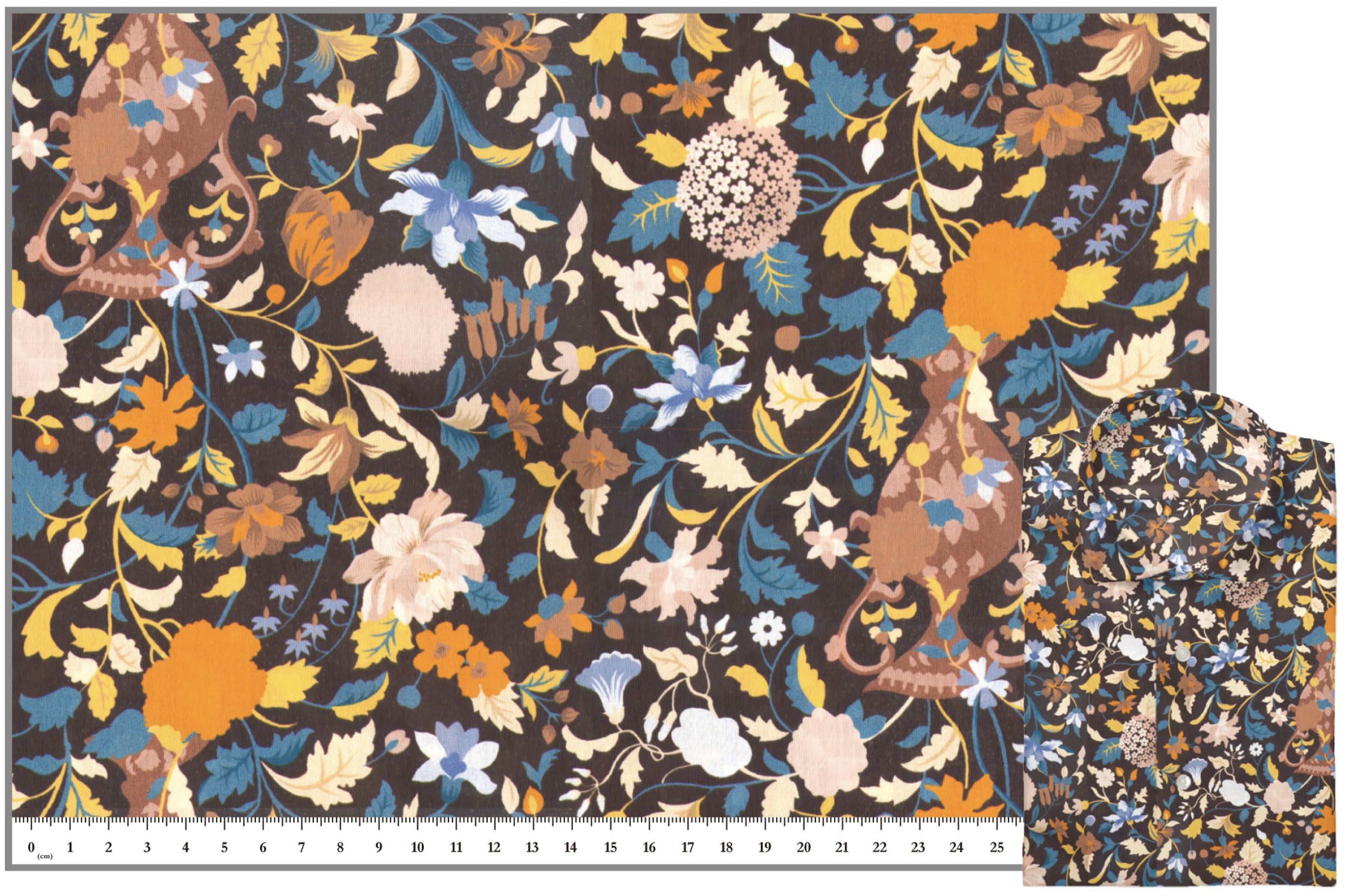 Garden Of Adonisは、毎年真夏になると女性たちが「アドニスの庭:Garden Of Adonis」に成長の早い植物を植え美しいAdonisの人生を祝ったというエピソードにインスピレーションを得たご覧の通りいかにもLibertyらしいとても華やかなパターンです。