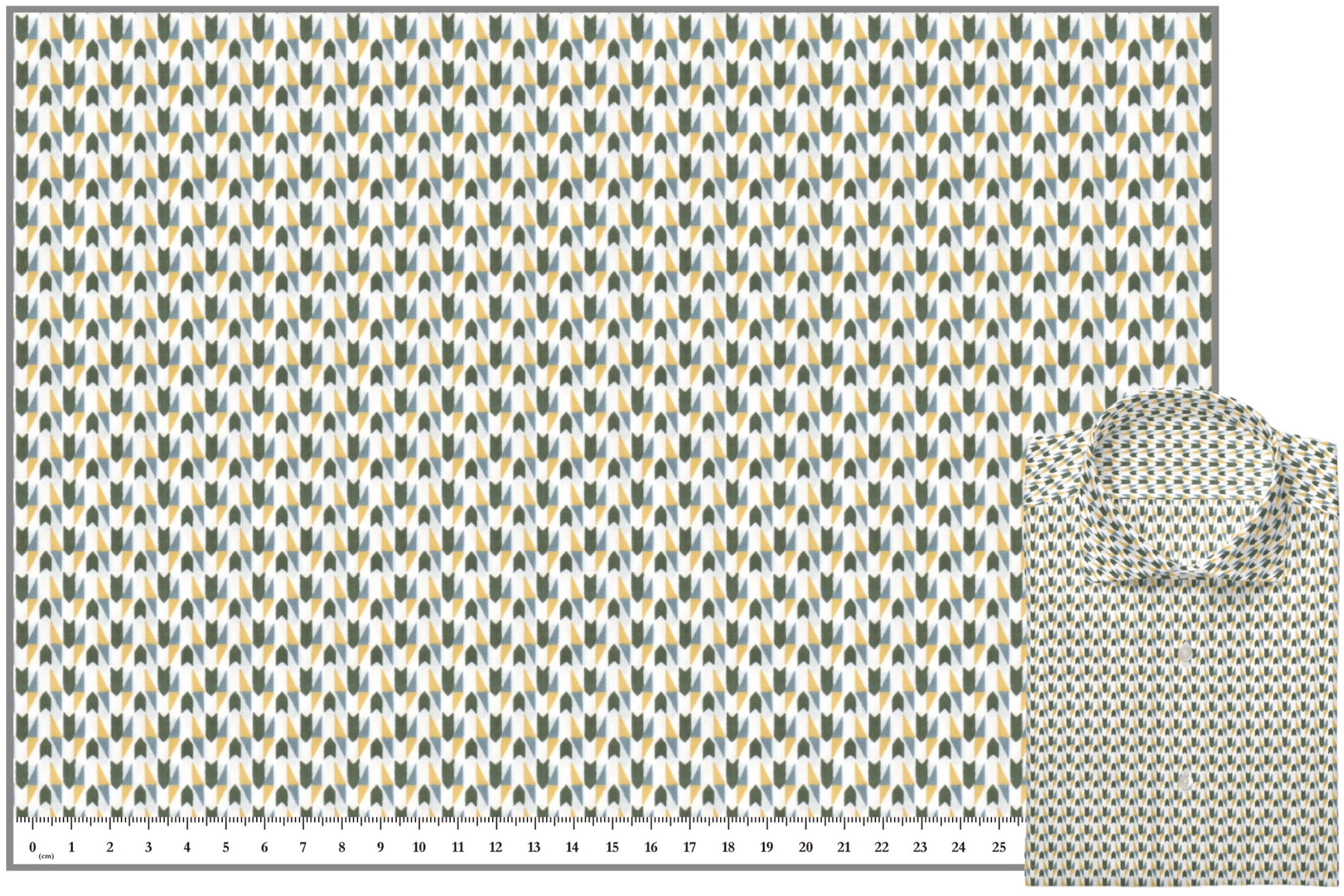 Libertyのアーカイヴから発見された1920年代の小さな紙片に着想を得て、フラットなガッシュ(不透明な水彩絵具の一種)でブロックプリント(手彫りの木版を使って布にインクを押し付けていくインドの伝統工芸)のようなテクスチュアを描いたWoodland Canopyです。