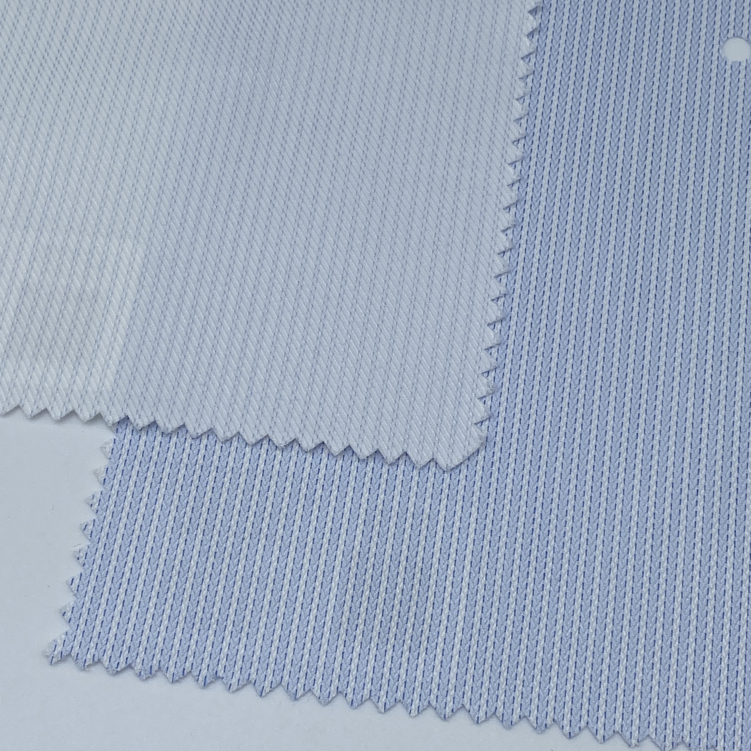 品質は100% Cotton、組織はマイクロツイル、糸番手は経糸(タテイト)・緯糸(ヨコイト)ともに60番手単糸(タンシ)+120番手双糸(番手違いの2本の糸を1本に撚り合わせた3Ply)です。