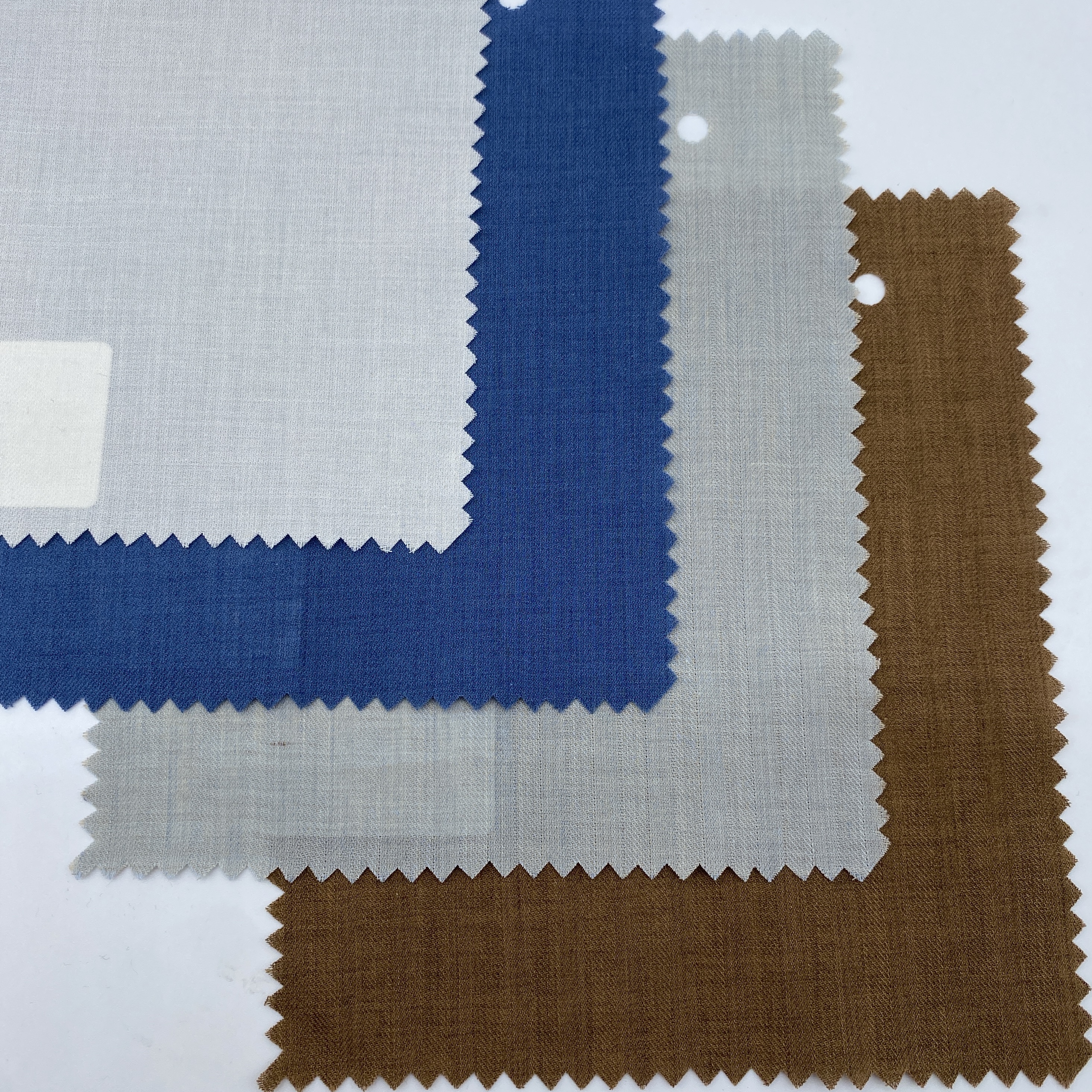 カラーは上からアイヴォリー、ブルー、ライトグレイ、ブラウンです。