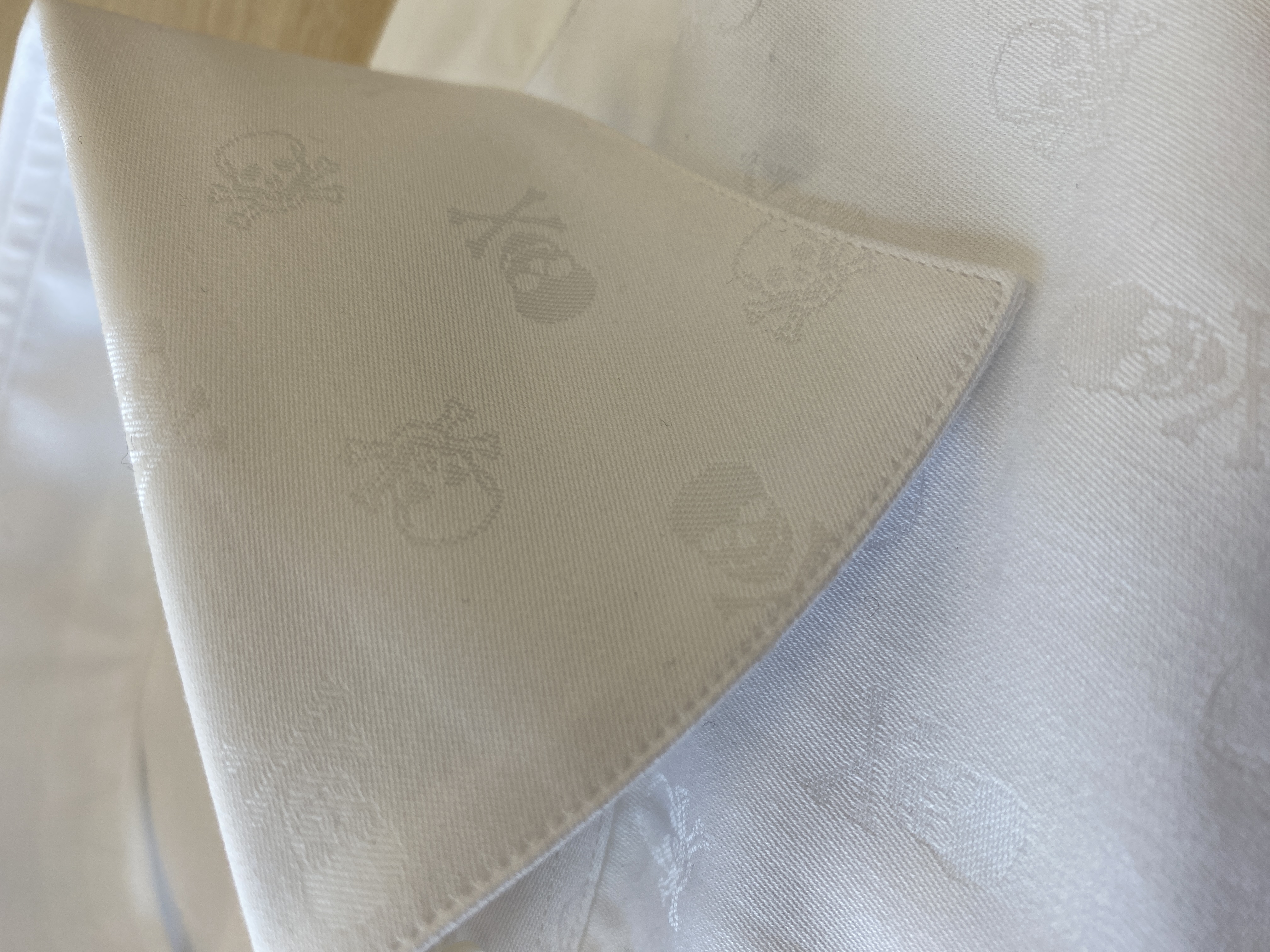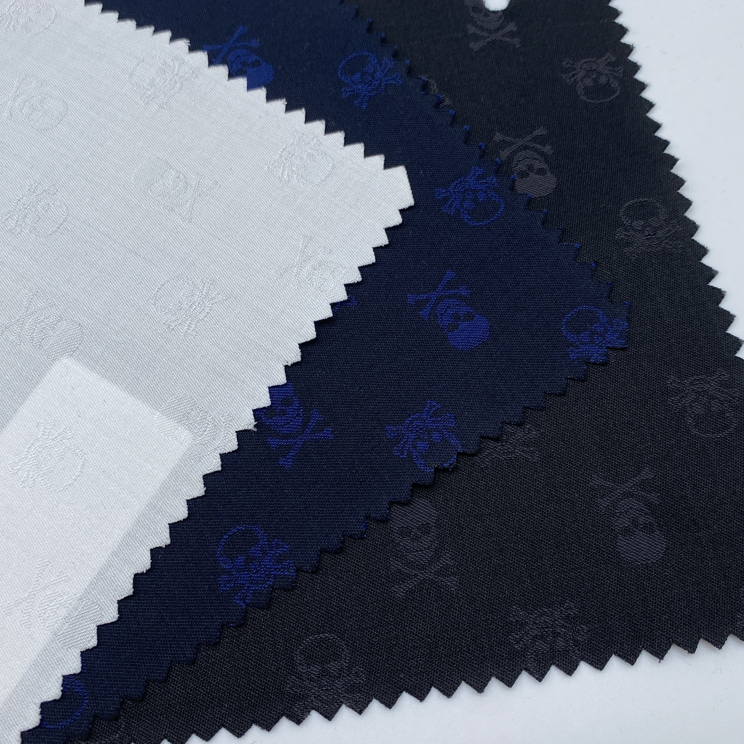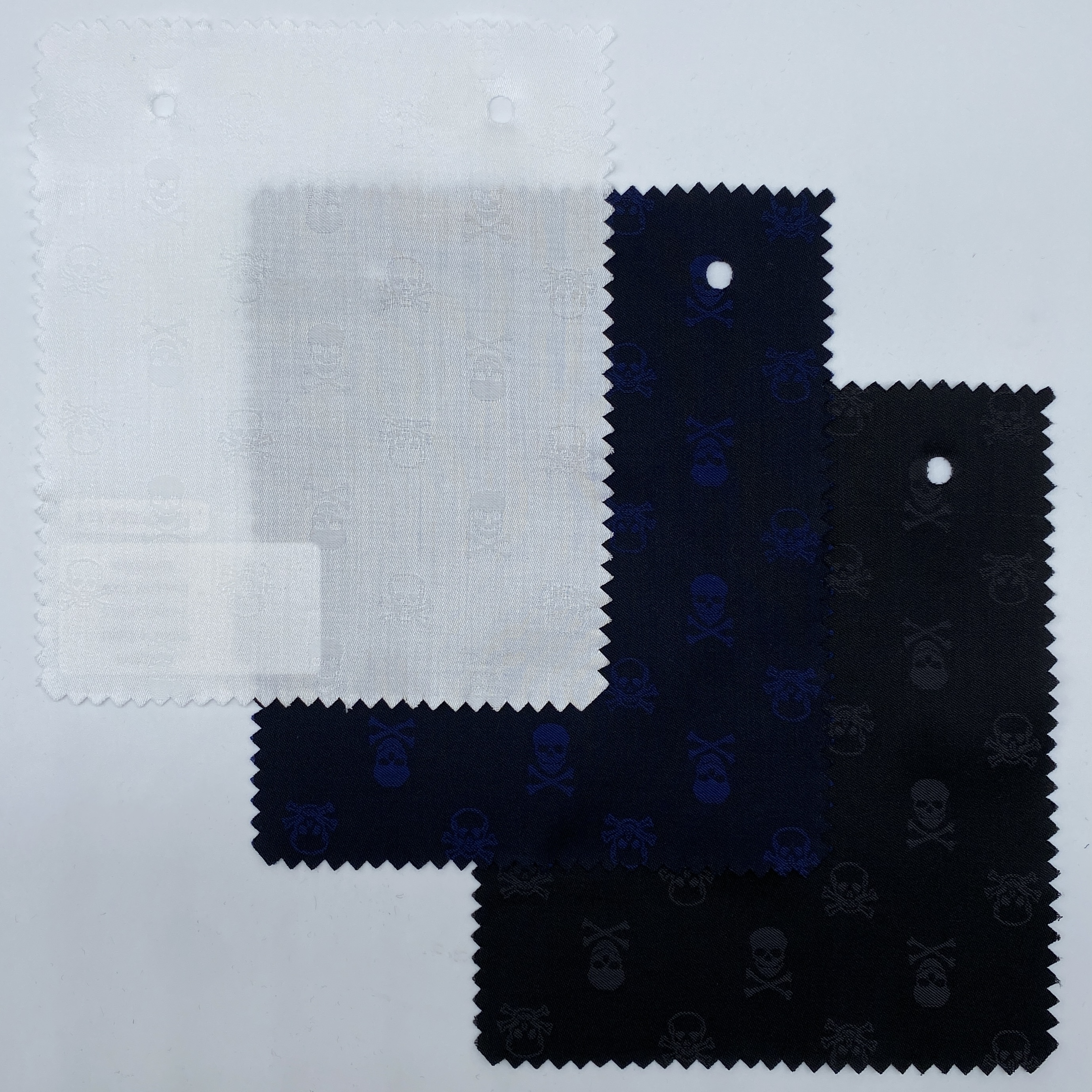 そして、こちらは織に変化をつけることで濃淡2種のスカルを表現していますが、以前のスカルジャカードはよりシンプルな織でスカルは1種のみでした。