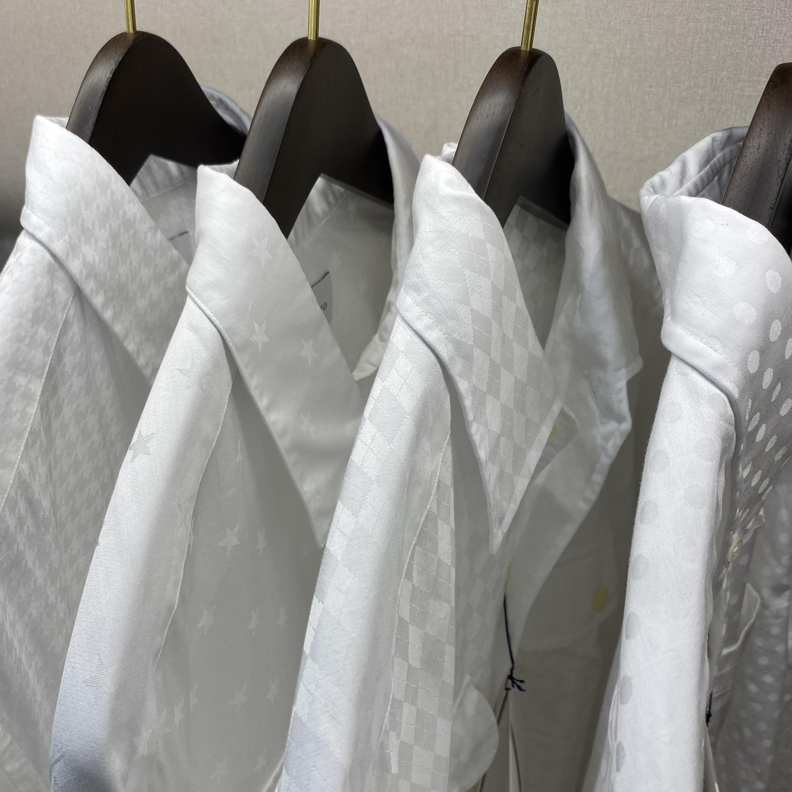 結果、合計8マークと「一大勢力」になりますので、そして以前に入荷したジャカード無地Shirting(シャーティング:シャツ向けテキスタイル)も一部まだ在庫が残っていますのでご来店の際はぜひともじっくりチェックをしてみてください。