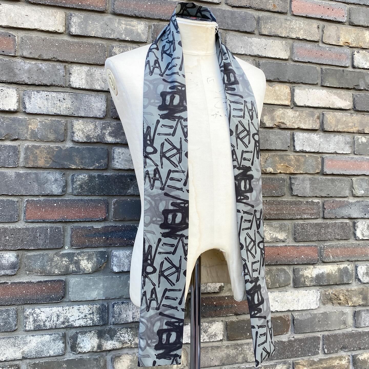 今日は「20世紀美術の最も重要な巨匠の1人とされる現代芸術アーティストJean-Michel Basquiat」が描いた文字をプリントした素材でお作りしたロングストールをご紹介します。