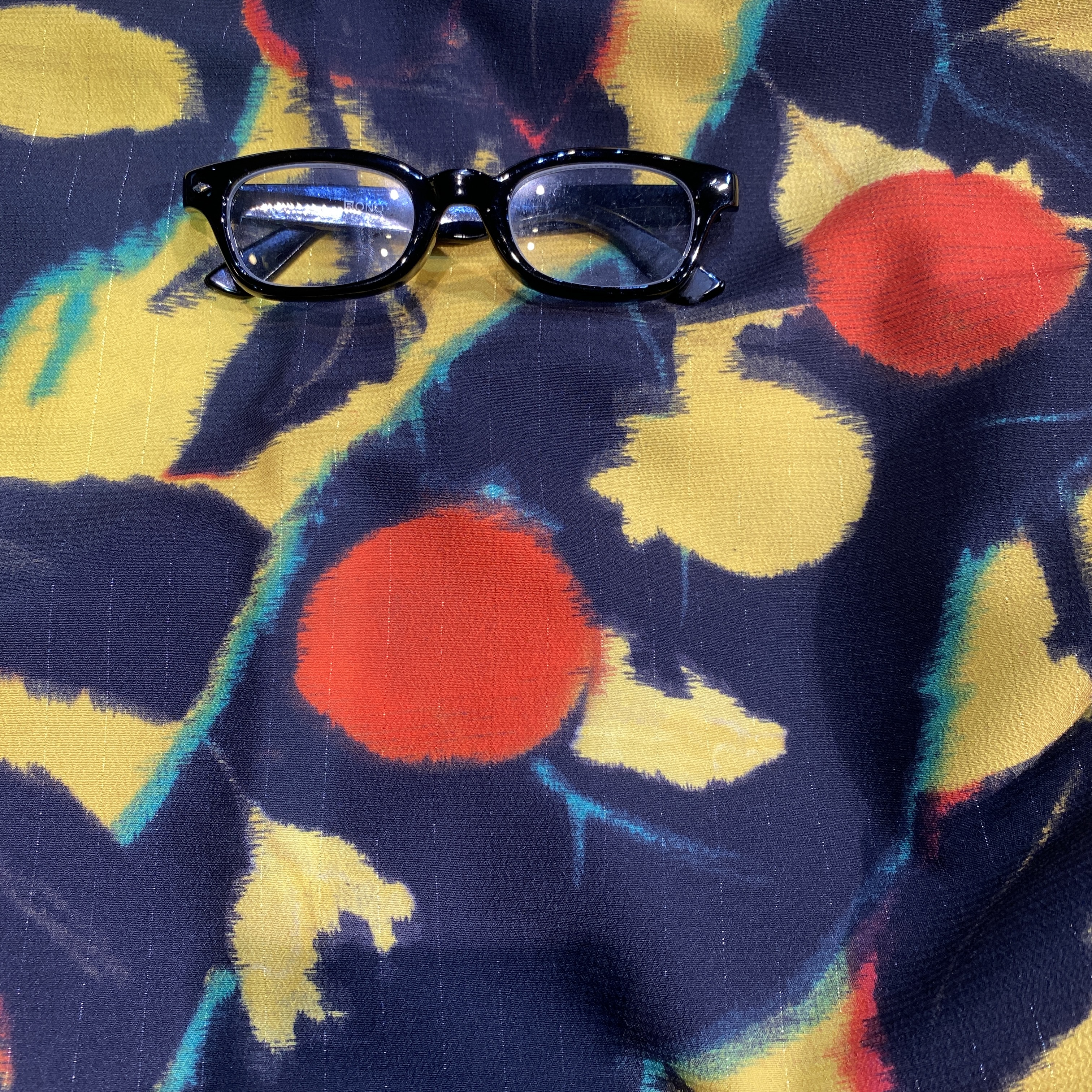 1番下の画像は愛用の老眼鏡を置いて柄が大さを分かりやすくしました。