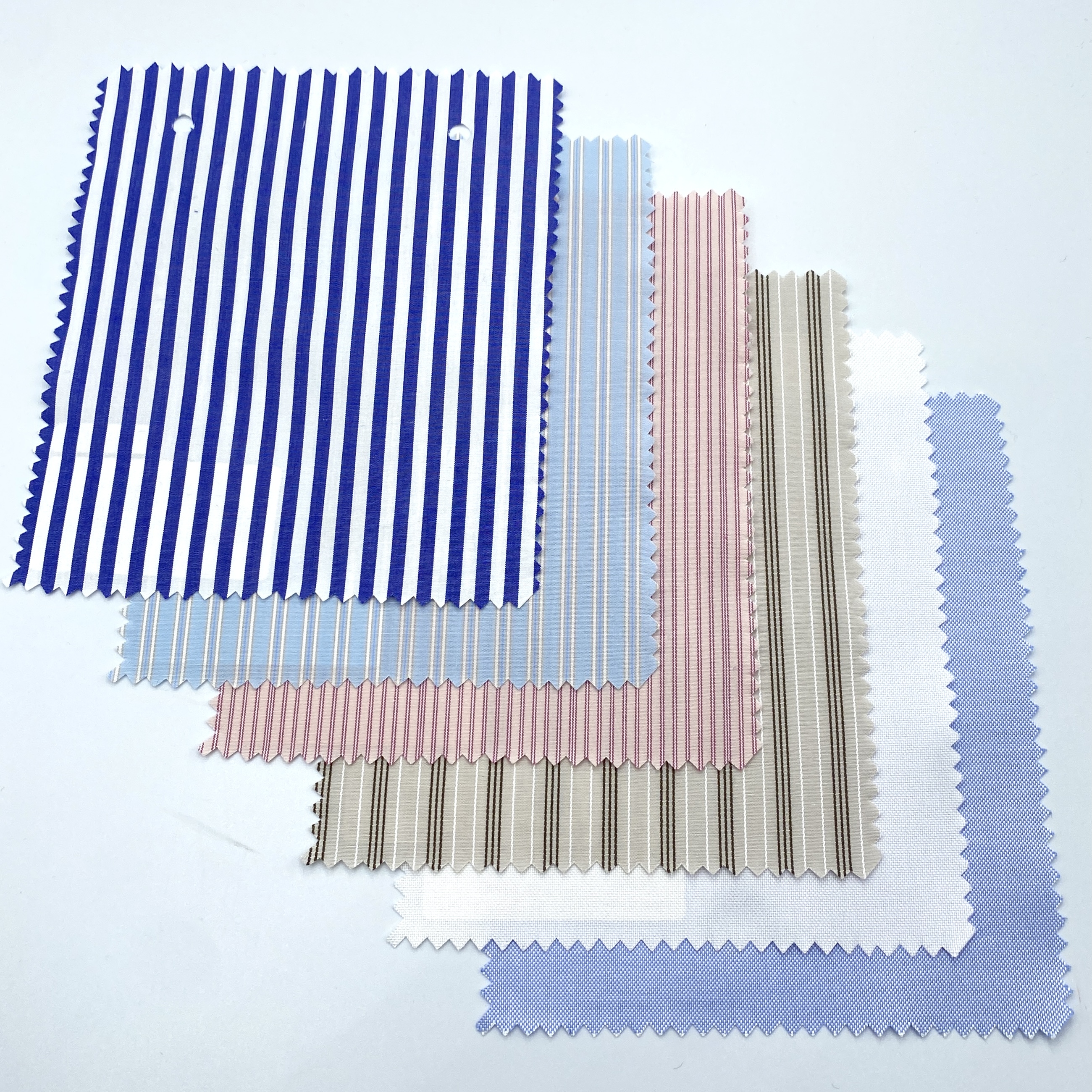 組織はポプリン/ブロード(平織)、糸番手は経糸(タテイト)・緯糸(ヨコイト)ともに60番手単糸(タンシ)と色柄だけでなくボディもかなり正統派です!