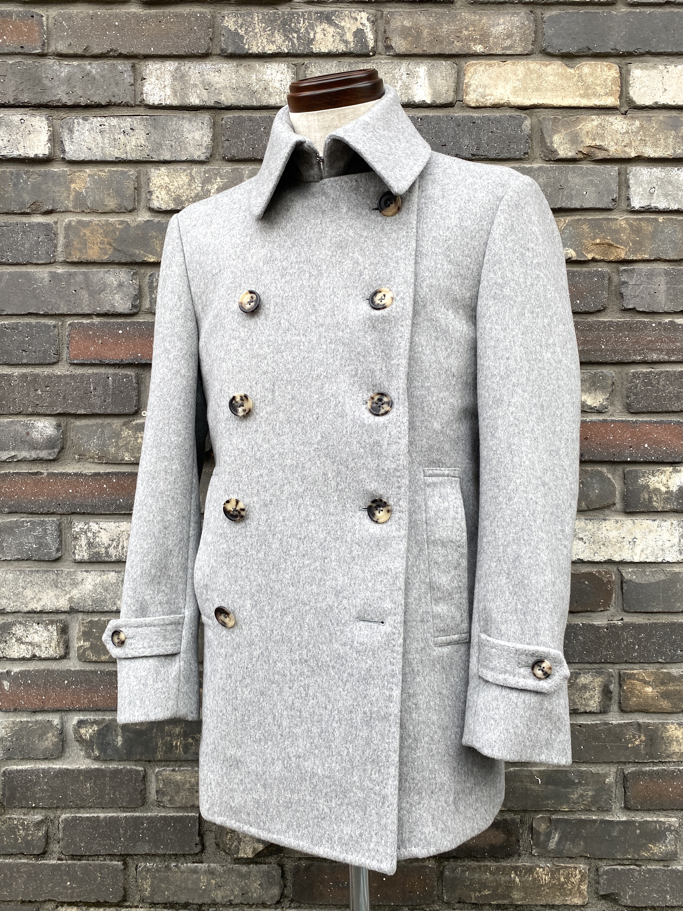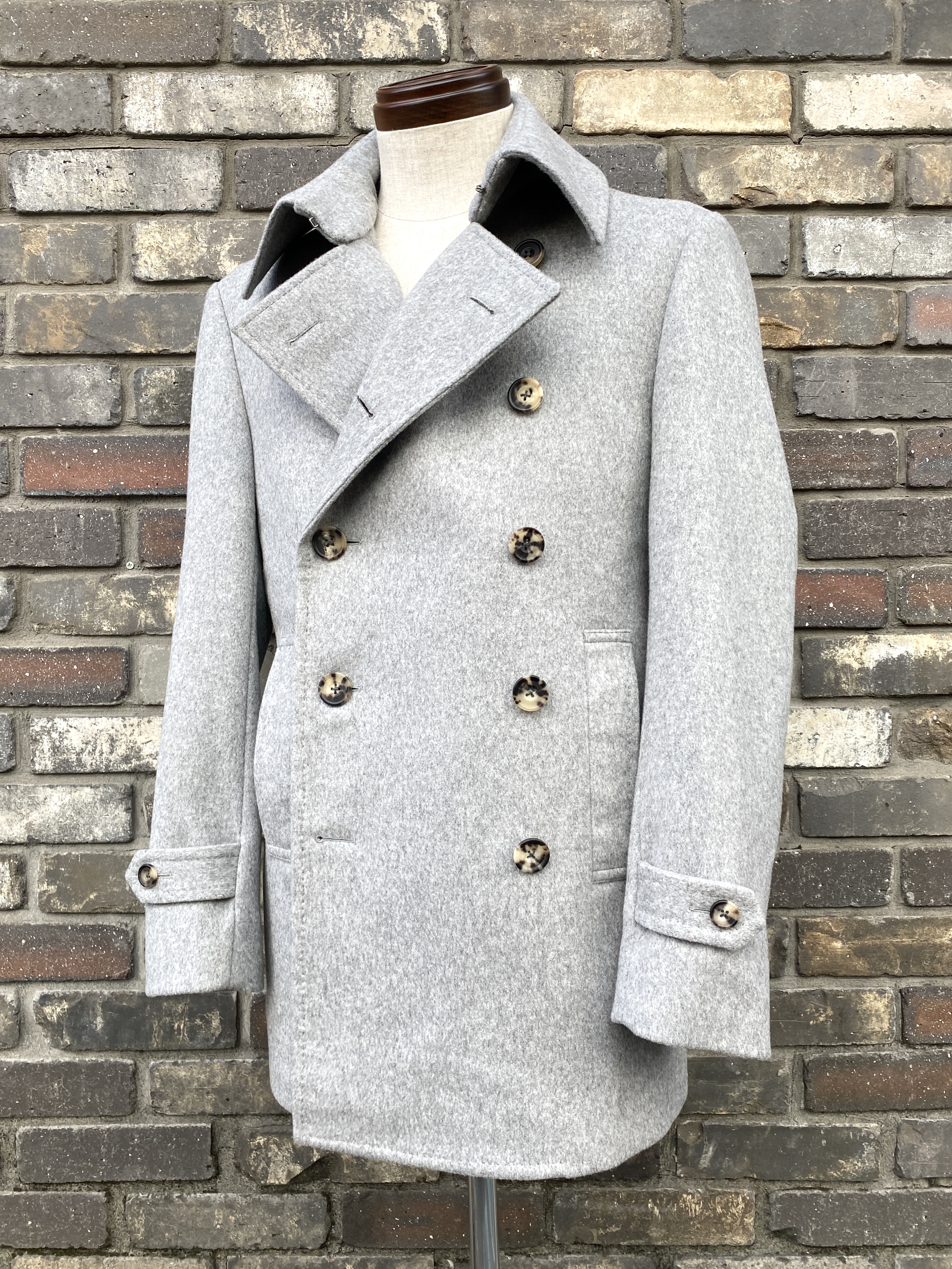ペール&ライトなグレイと美しい毛並みが特徴的な国産素材でお作りしたピーコートです。