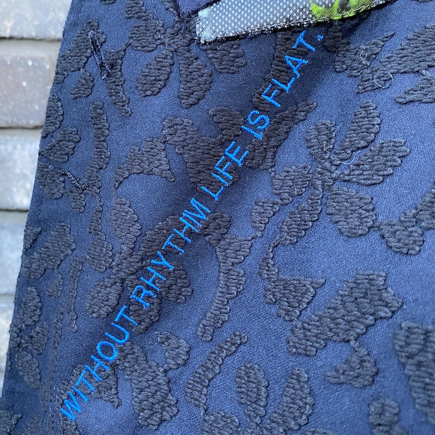 WITHOUT RHYTHM LIFE IS FLAT. 刺繍が入っています。