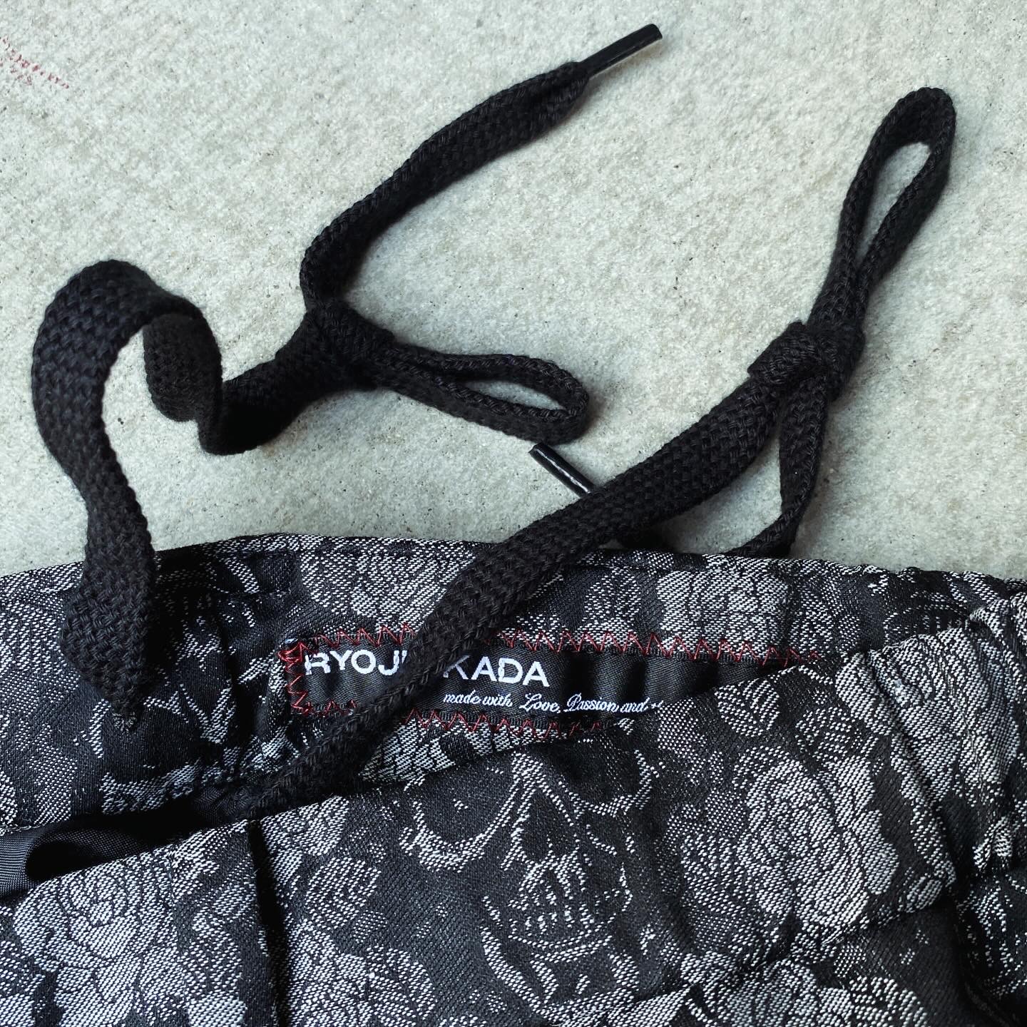 「外紐スタイル(ドローストリングの”出口”が腰帯の外側にあるタイプ)」より少しドレッシーな「内紐スタイル(ドローストリングの”出口”が腰帯の内側にあるタイプ)」で仕上げました。