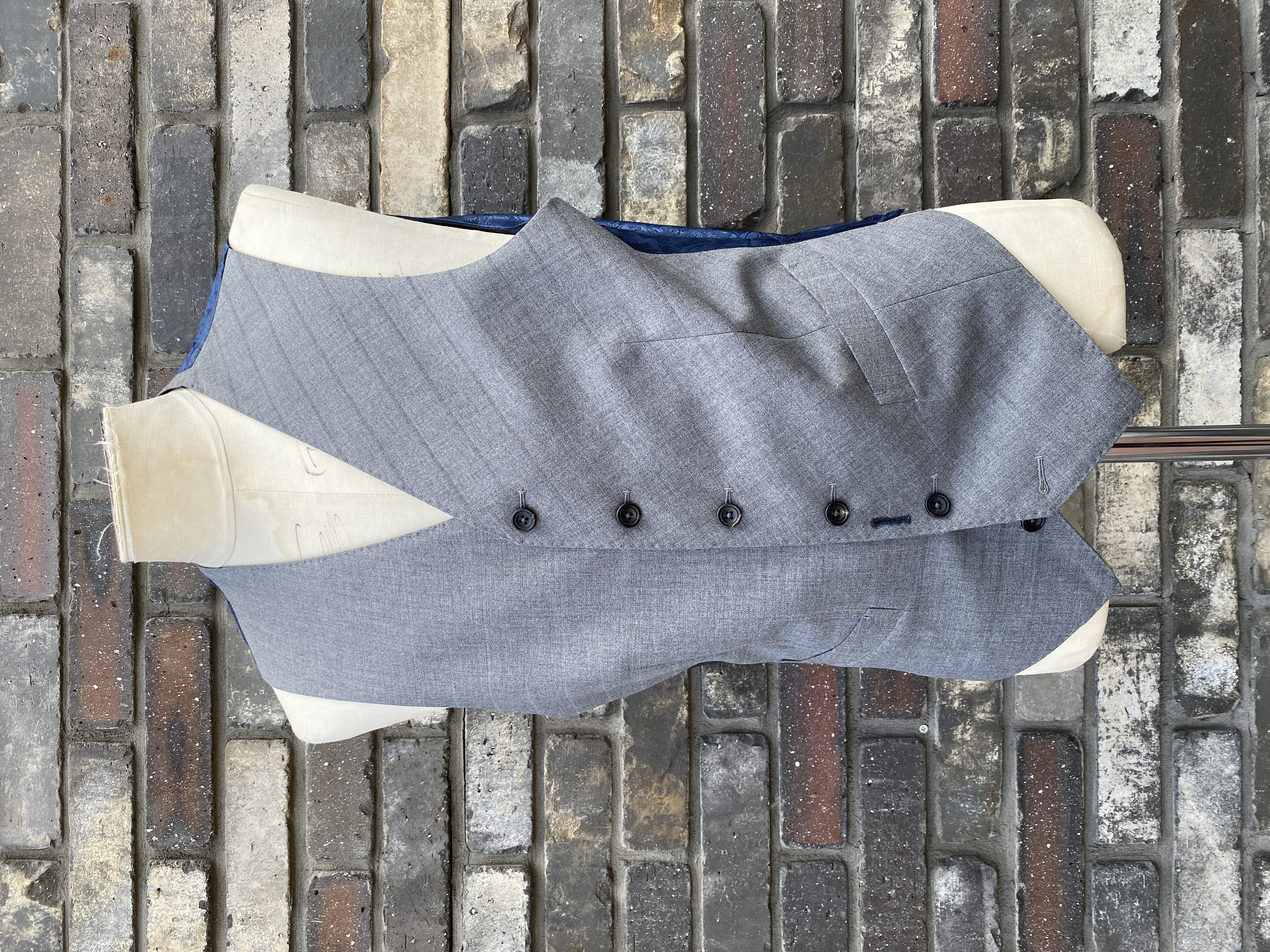 つまり、このヴェストには「縦・横・斜め」の裁断が混在しているのであります!