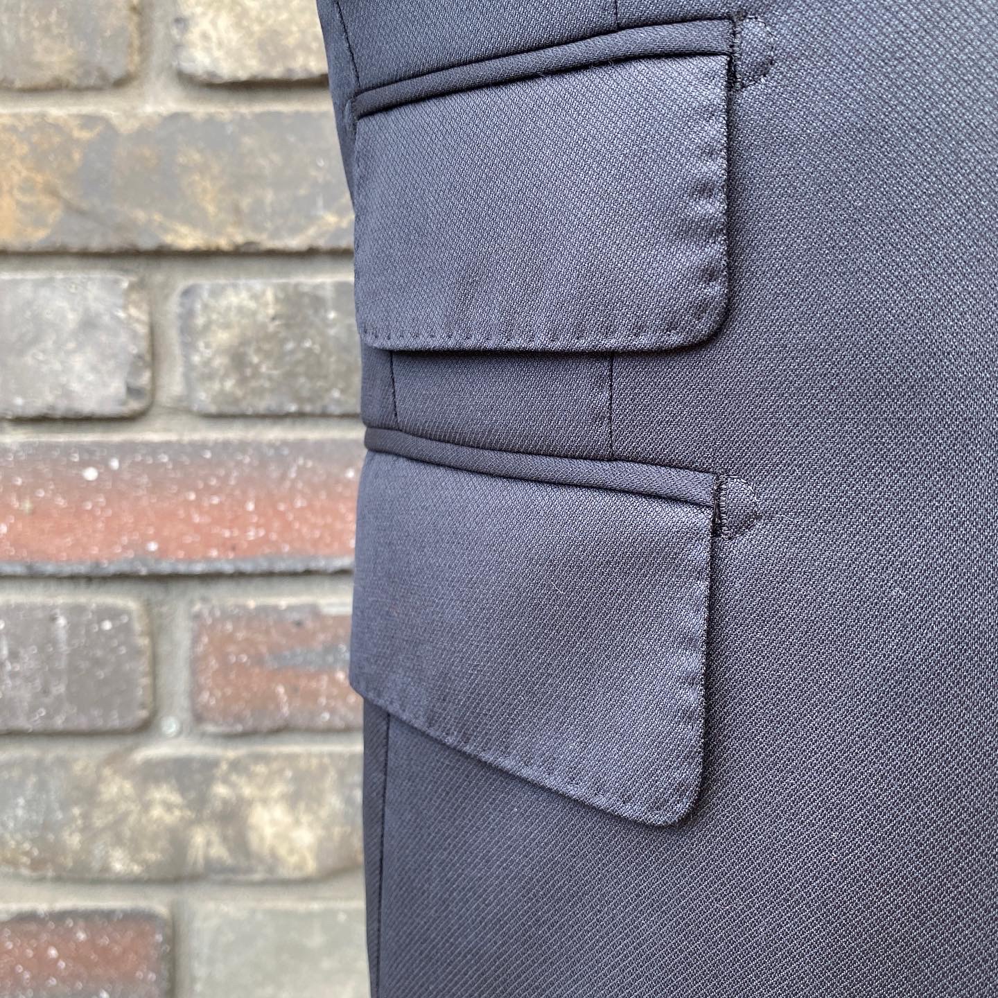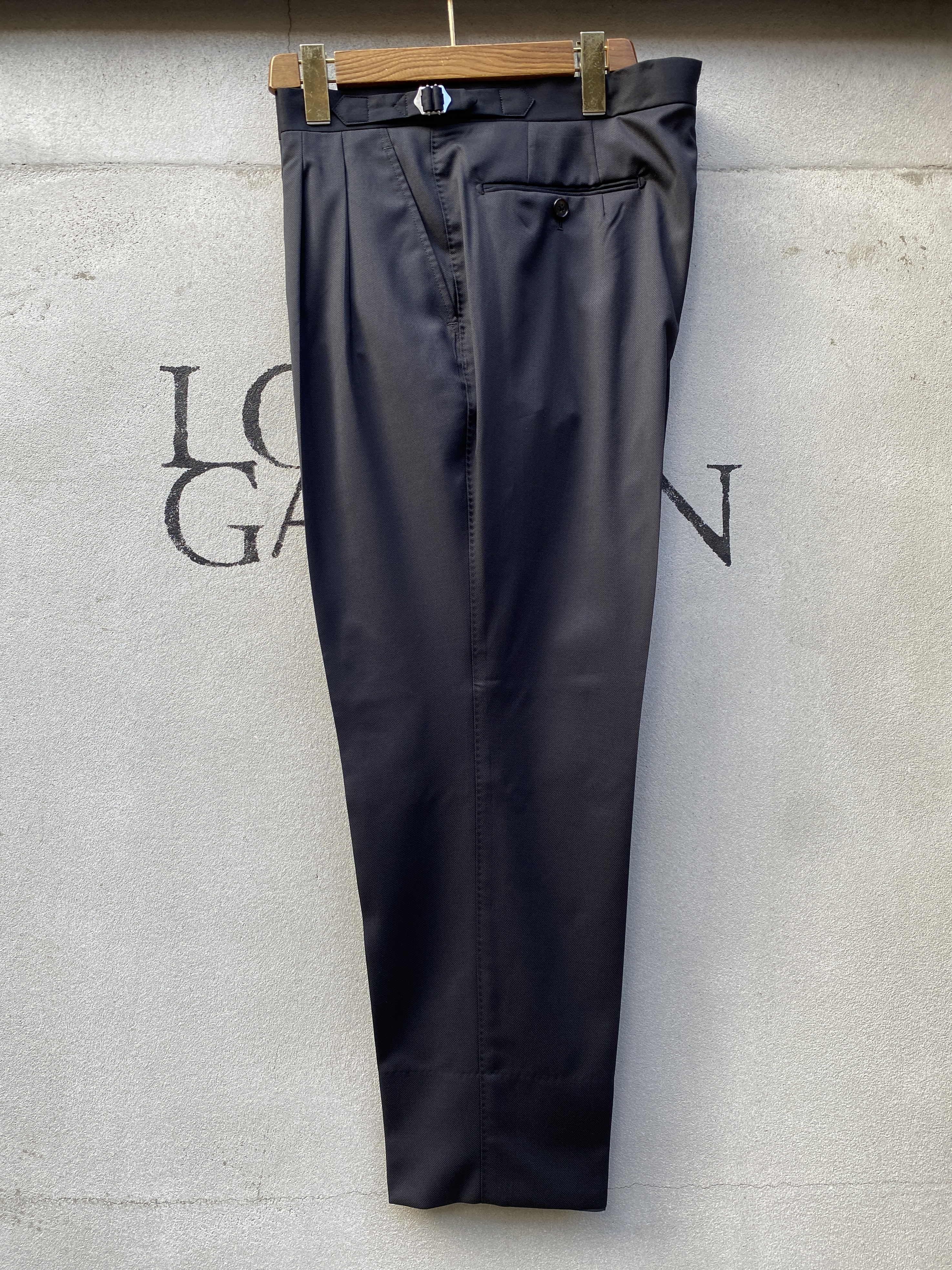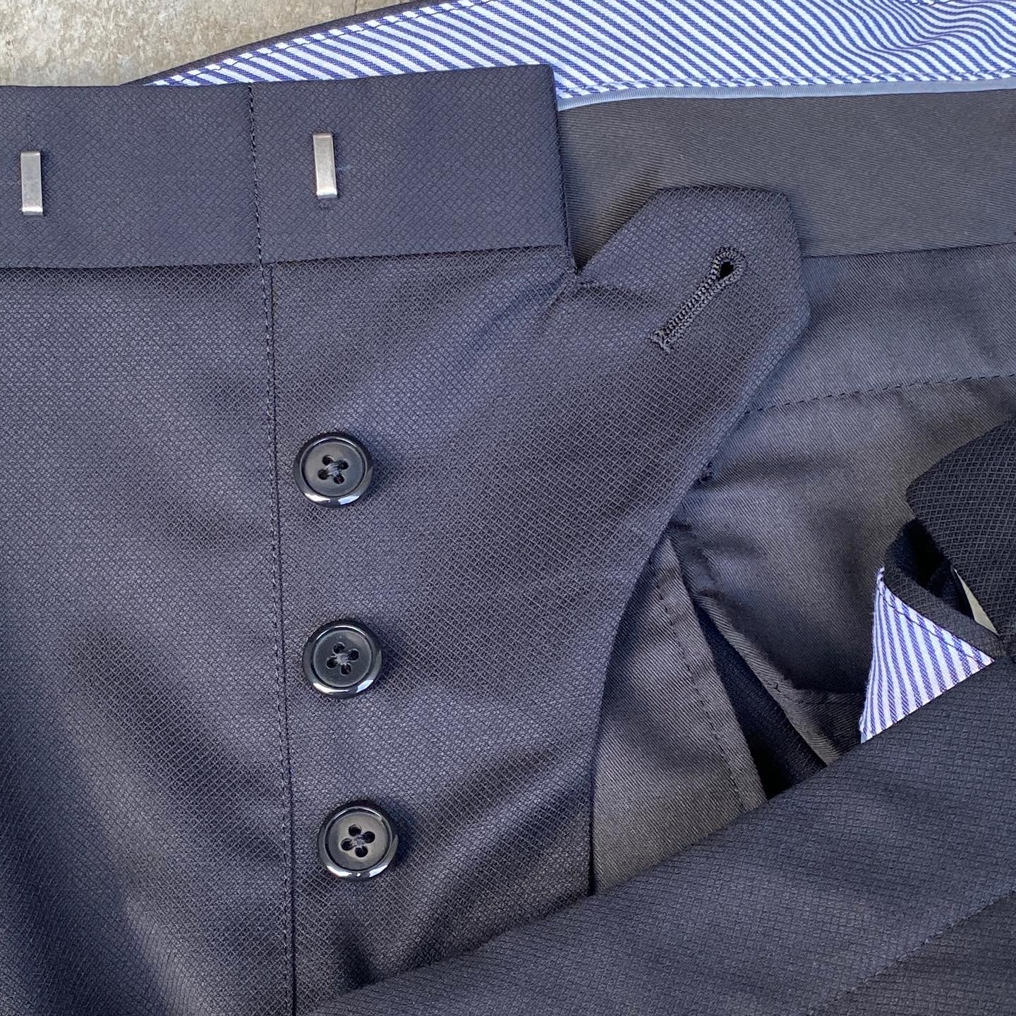 あ、ちなみに素材はVBCの100% Super 110’s Wool(240g/m)で、織柄でマイクロダイヤ柄が表現されたブラック無地素材です。